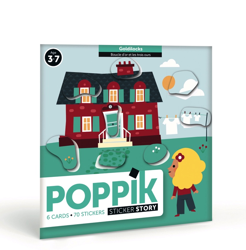 Avec ce kit Poppik, l’enfant découvre 6 cartes (18 x 18 cm) à compléter avec des stickers. L’enfant observe les images avec attention, puis il place une à une les 70 gommettes du kit. Ainsi, il reconstitue les images. En les plaçant dans le bon ordre, il peut alors découvrir l’histoire (le texte est fourni sur un feuillet séparé).