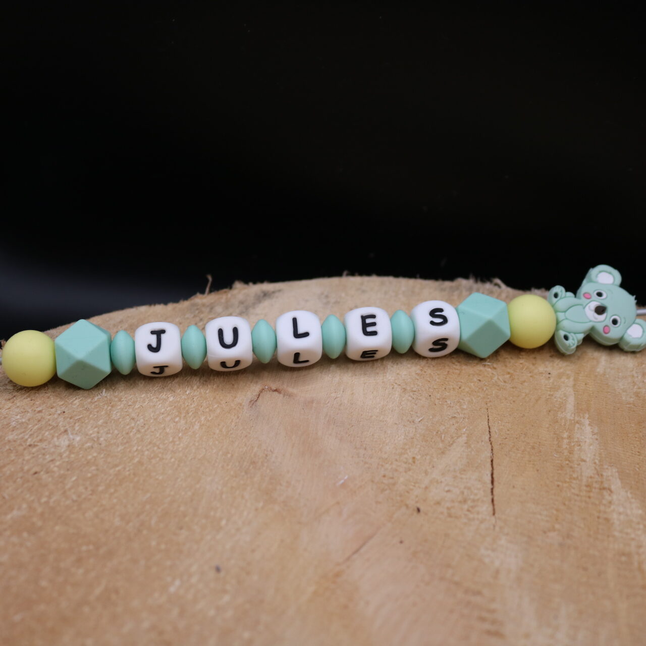 Fabriqué avec des perles en silicone, longueur max 22 cm (respect des normes de sécurité en vigueur).