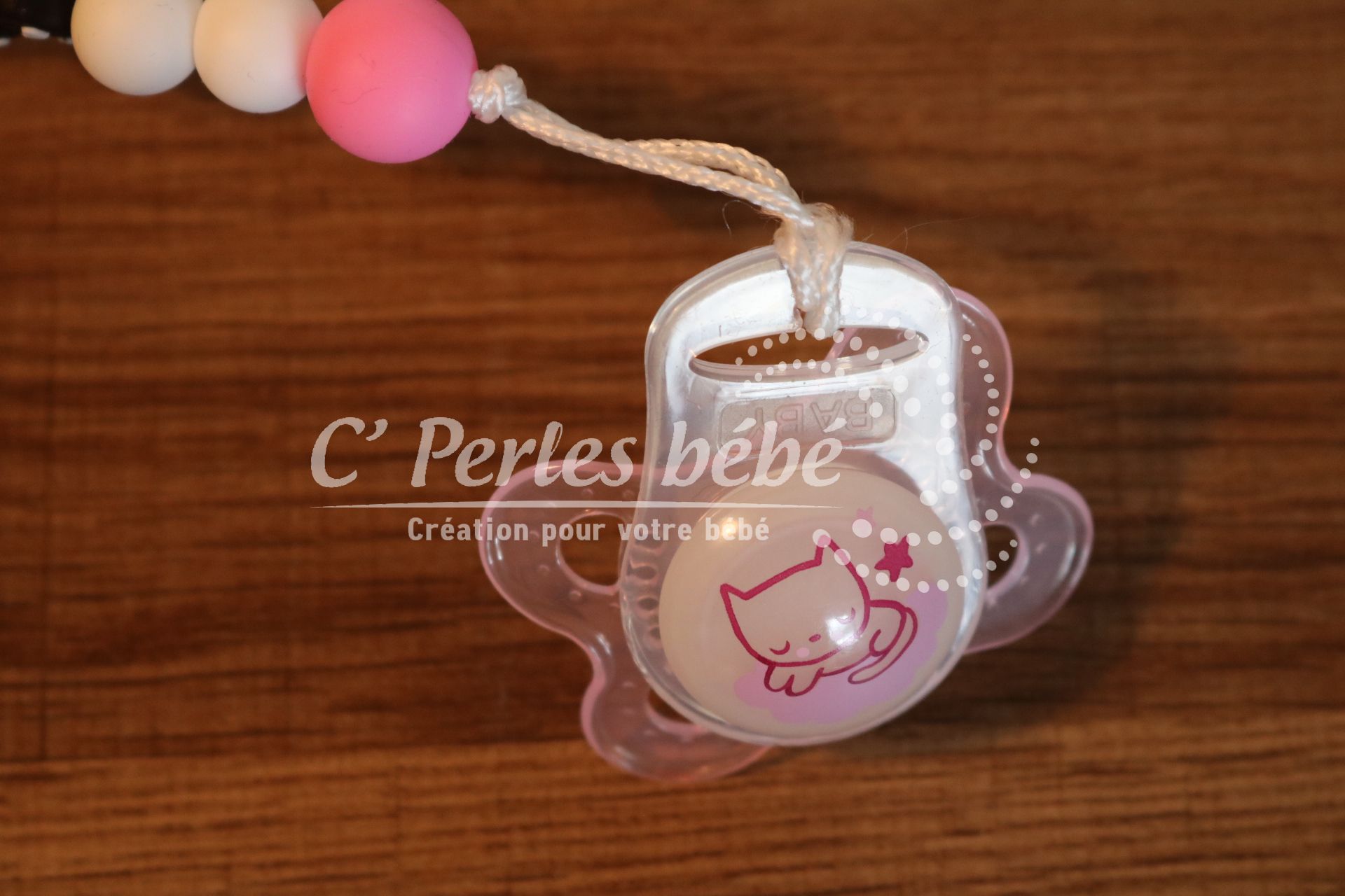 - L’attache tétine est maintenant fixée.