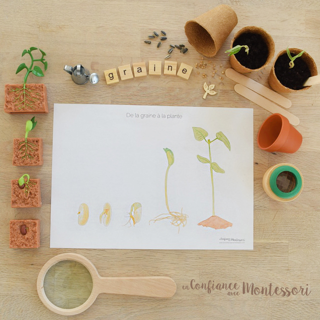 Cette affiche, représentant la germination de la graine, est à la fois un matériel éducatif mais également une affiche décorative. Elle peut servir tout d’abord de support pour soutenir les apprentissages et expériences du jeune enfant. Elle peut aussi être mise en valeur dans un cadre, disposée dans la chambre ou la classe à hauteur des enfants.