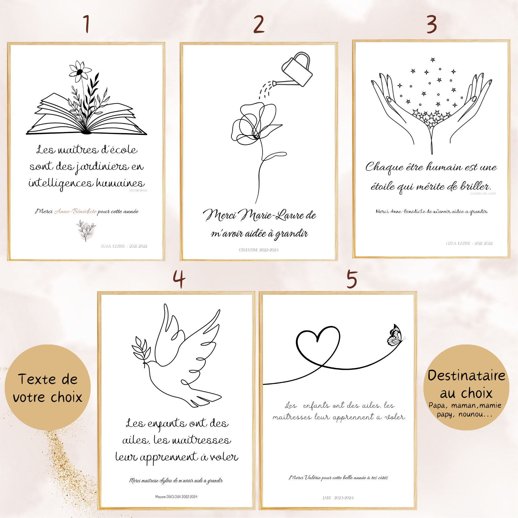 ♡ Un design personnalisé tout en douceur, plein d’affection et de tendresse à offrir à une maîtresse d’école, une nounou ou une atsem pour la remercier d’avoir pris soin de votre enfant.