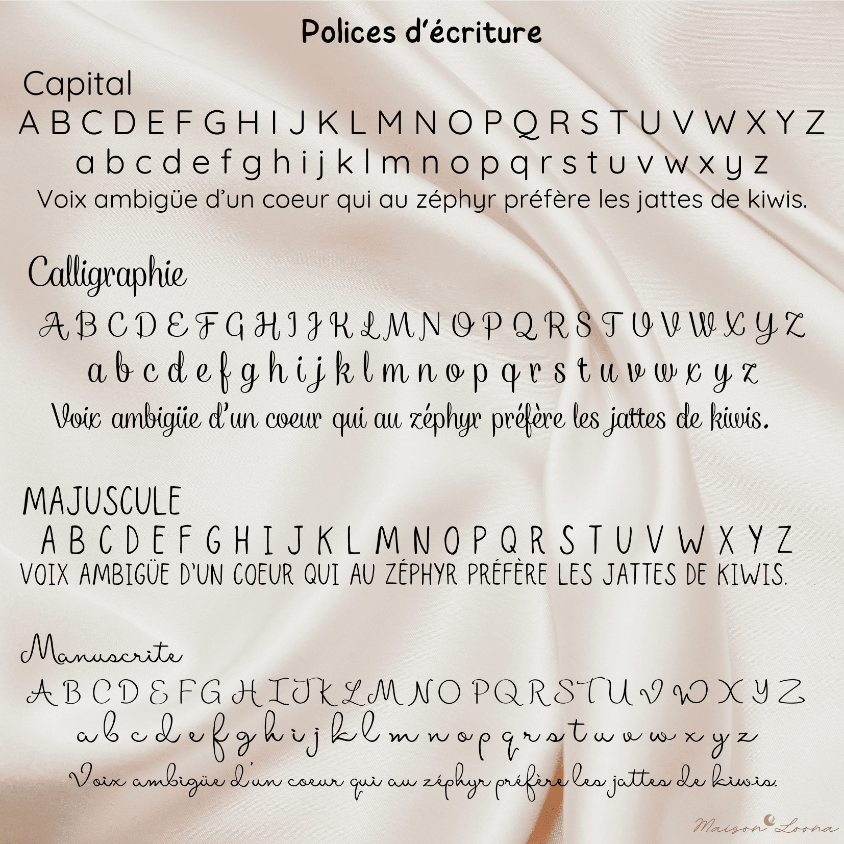 Ajoutez votre touche personnelle à votre affiche en y intégrant les mots qui vous tiennent à cœur : une belle citation, une date marquante, un ou plusieurs prénoms… Je prendrai soin de disposer chaque élément avec équilibre, en tenant compte du design choisi et de la quantité d’informations. Mon objectif est de créer une composition élégante et harmonieuse, qui mettra en valeur votre message.