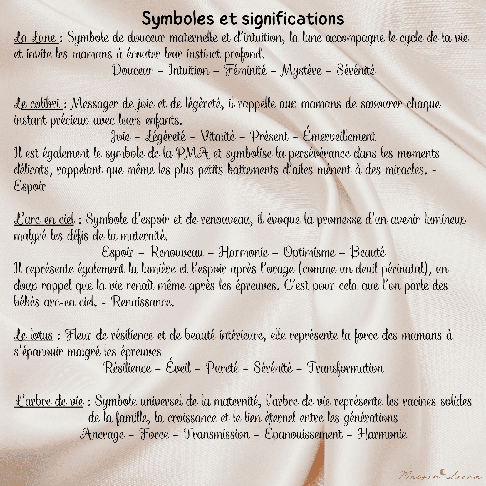♥ Le coeur : Représentation universelle de l’amour, il exprime la tendresse infinie et le lien unique entre une maman et son enfant.