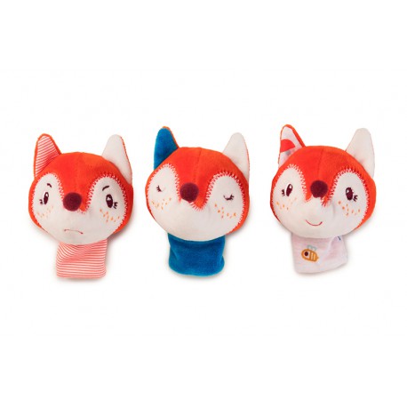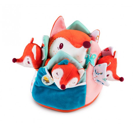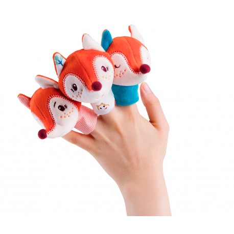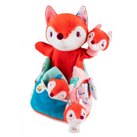 Coucou ! Alice la renarde apparaît parmi les feuilles… Elle cherche ses trois petits. Grâce à cette marionnette à main câline et à ces trois petites marionnettes à doigts aux humeurs différentes, vous inventerez avec votre enfant une foule d’histoires, depuis le simple jeu du coucou-caché jusqu’aux aventures les plus folles.