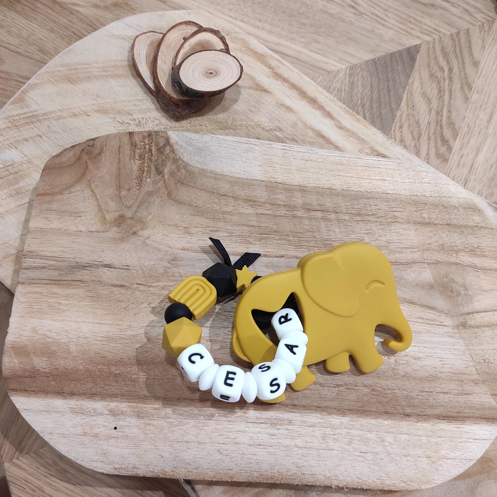 Anneau de dentition arc en ciel jaune moutarde