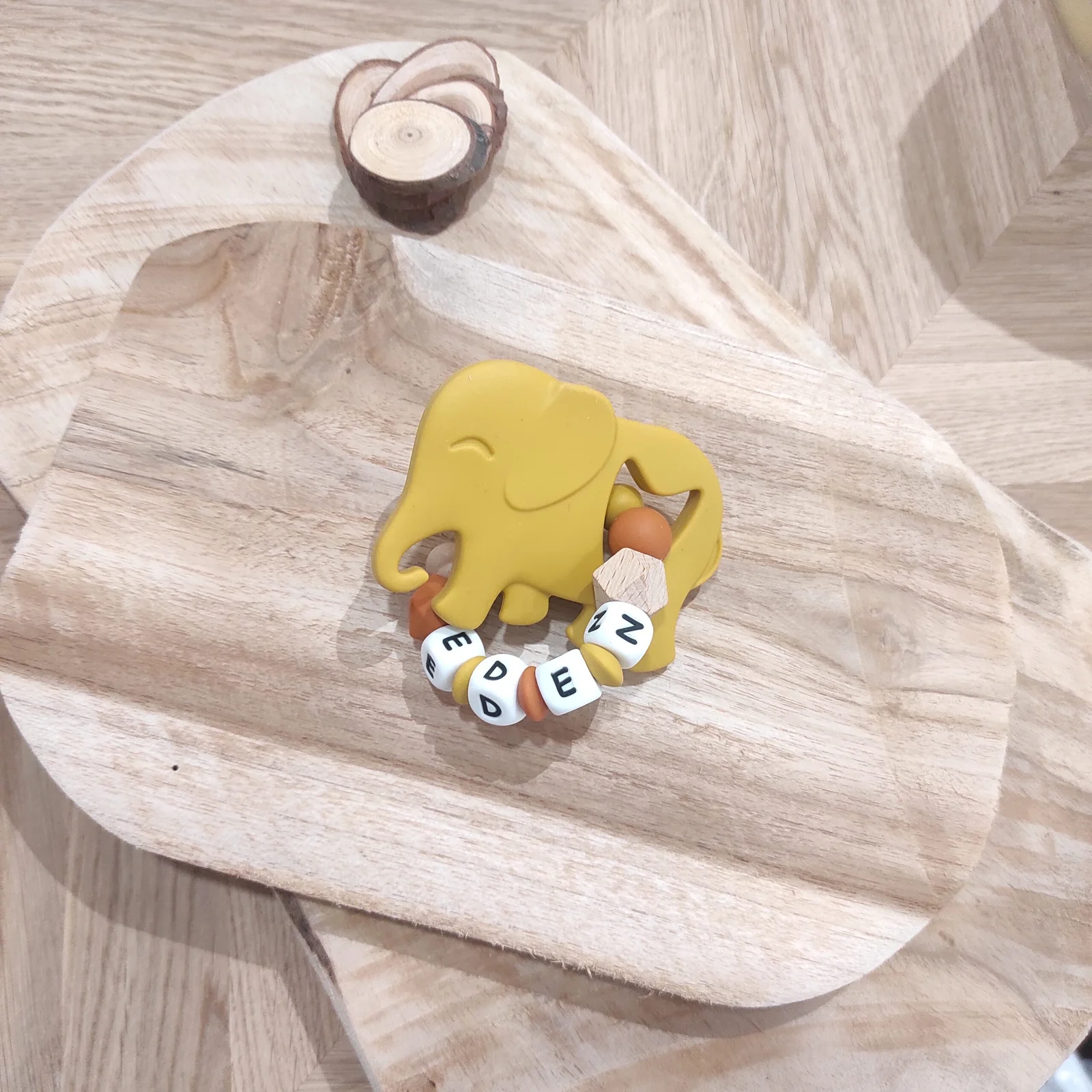 Anneau de dentition éléphant jaune moutarde
