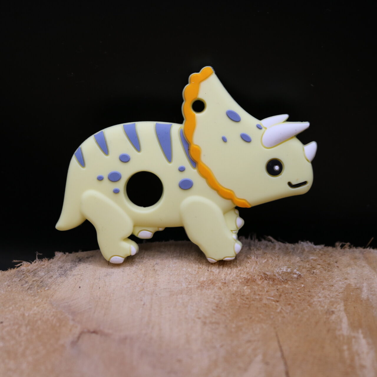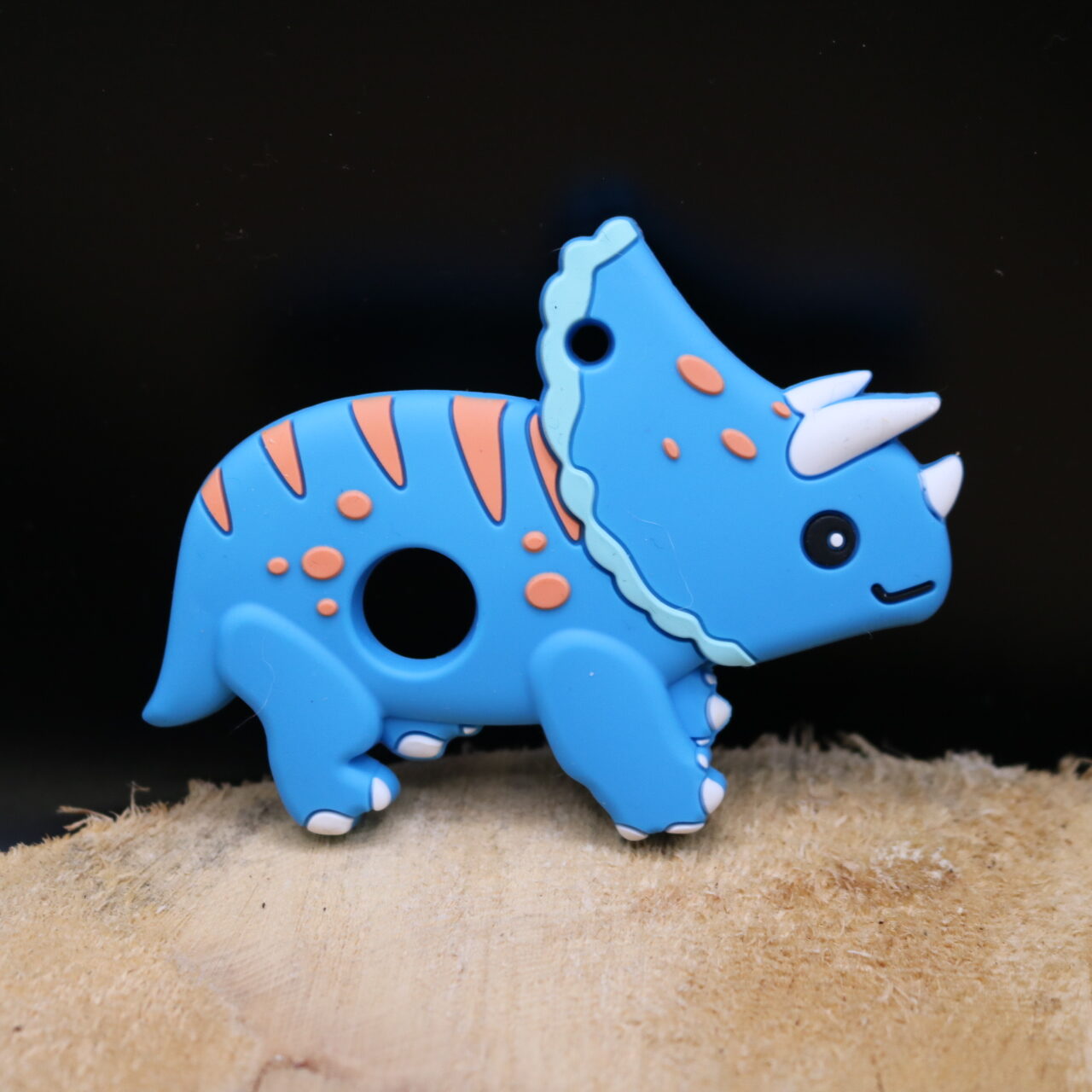 Anneau de dentition dinosaure à cornes, s’adapte sur tous les modèles d’attache sucette. Jouet d’éveil et de dentition, c’est l’accessoire indispensable pour masser les gencives de bébé !