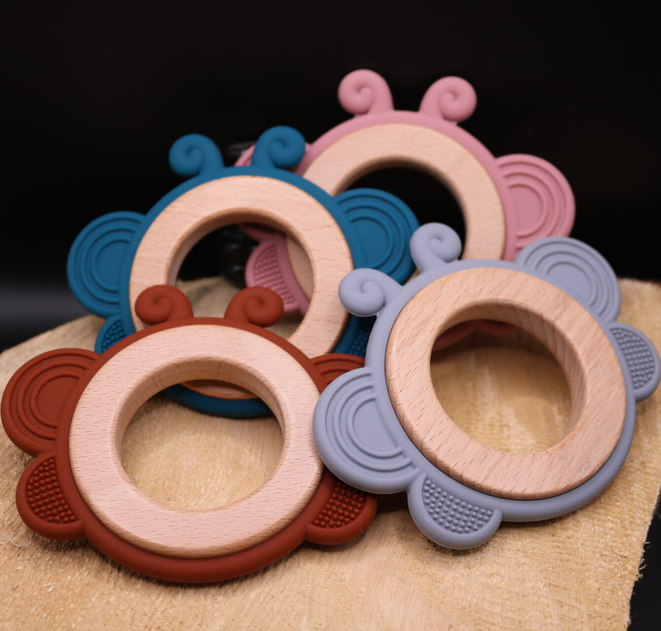 Les objets en silicone ou bois sont idéales pour que bébé fasse ses gencives.
