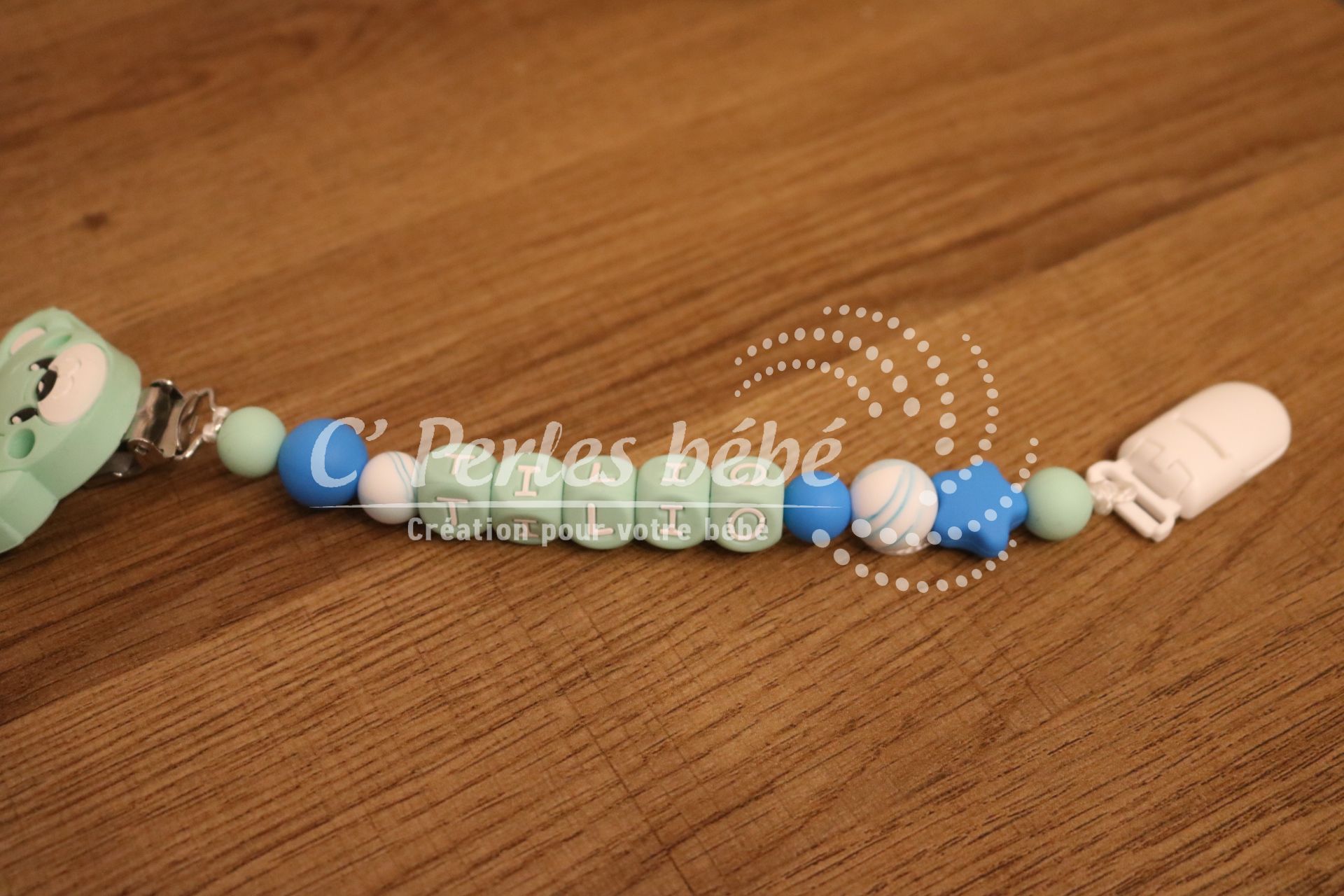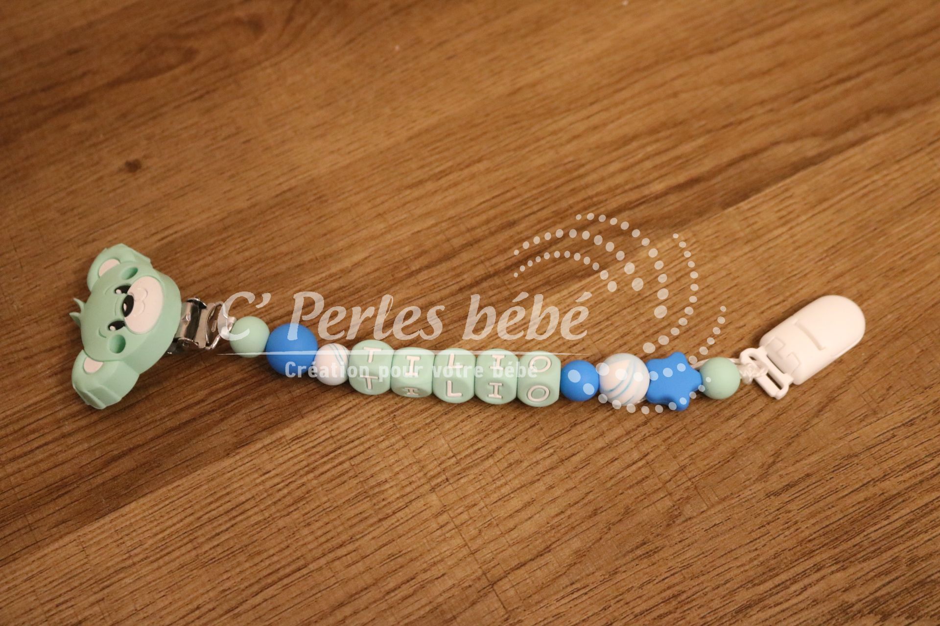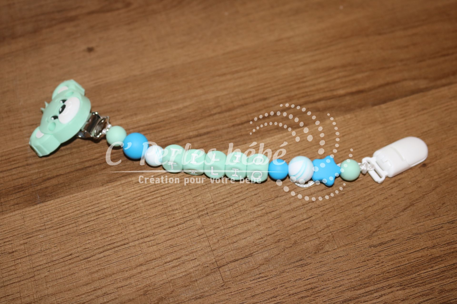 Attache doudou fait main par mes soins, entièrement personnalisable. Perles en silicone, longueur max 22 cm (respect des normes de sécurité en vigueur).