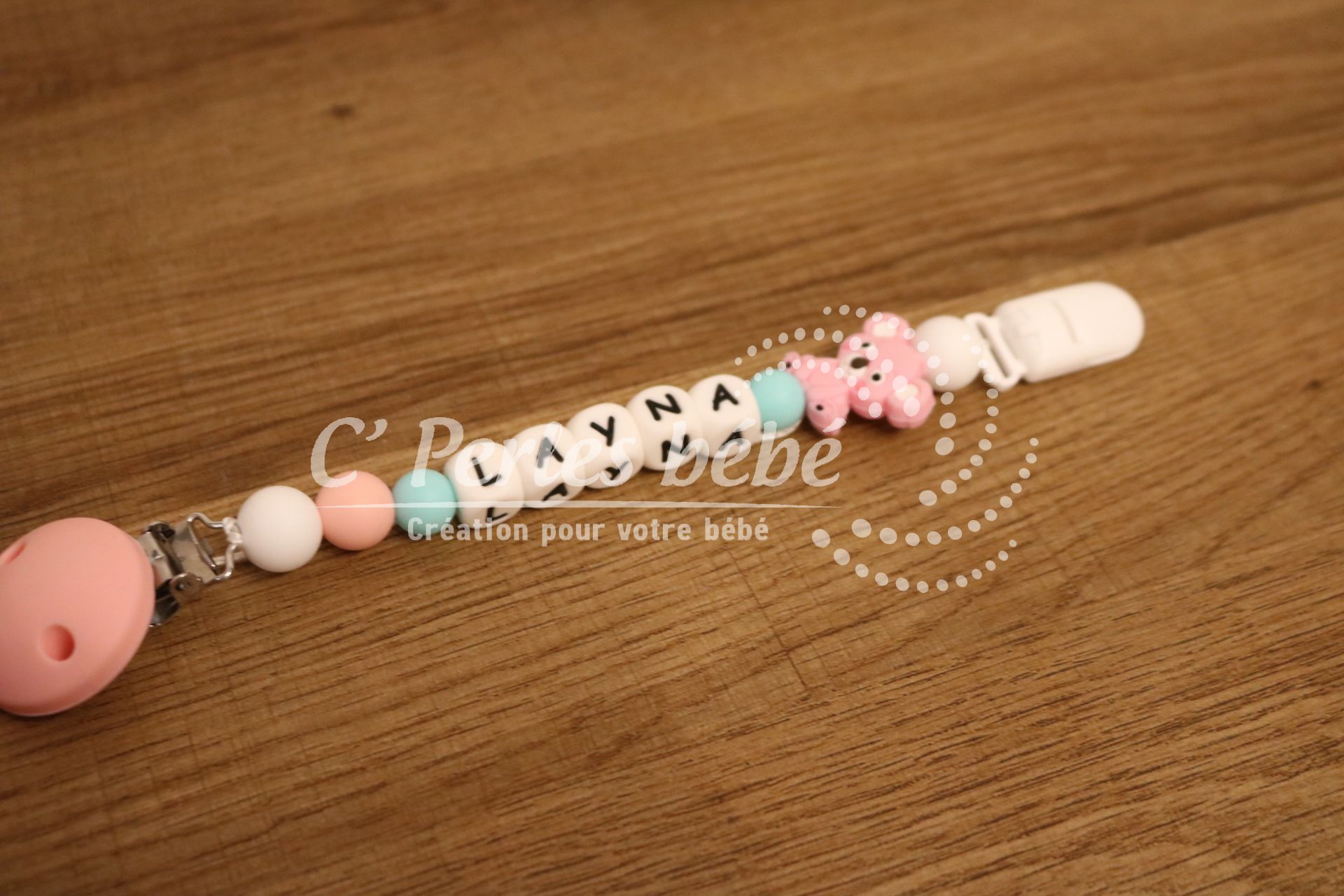 Longueur de l’attache tétine dépend du nombre de perles et de leur forme (normes 22cm max)