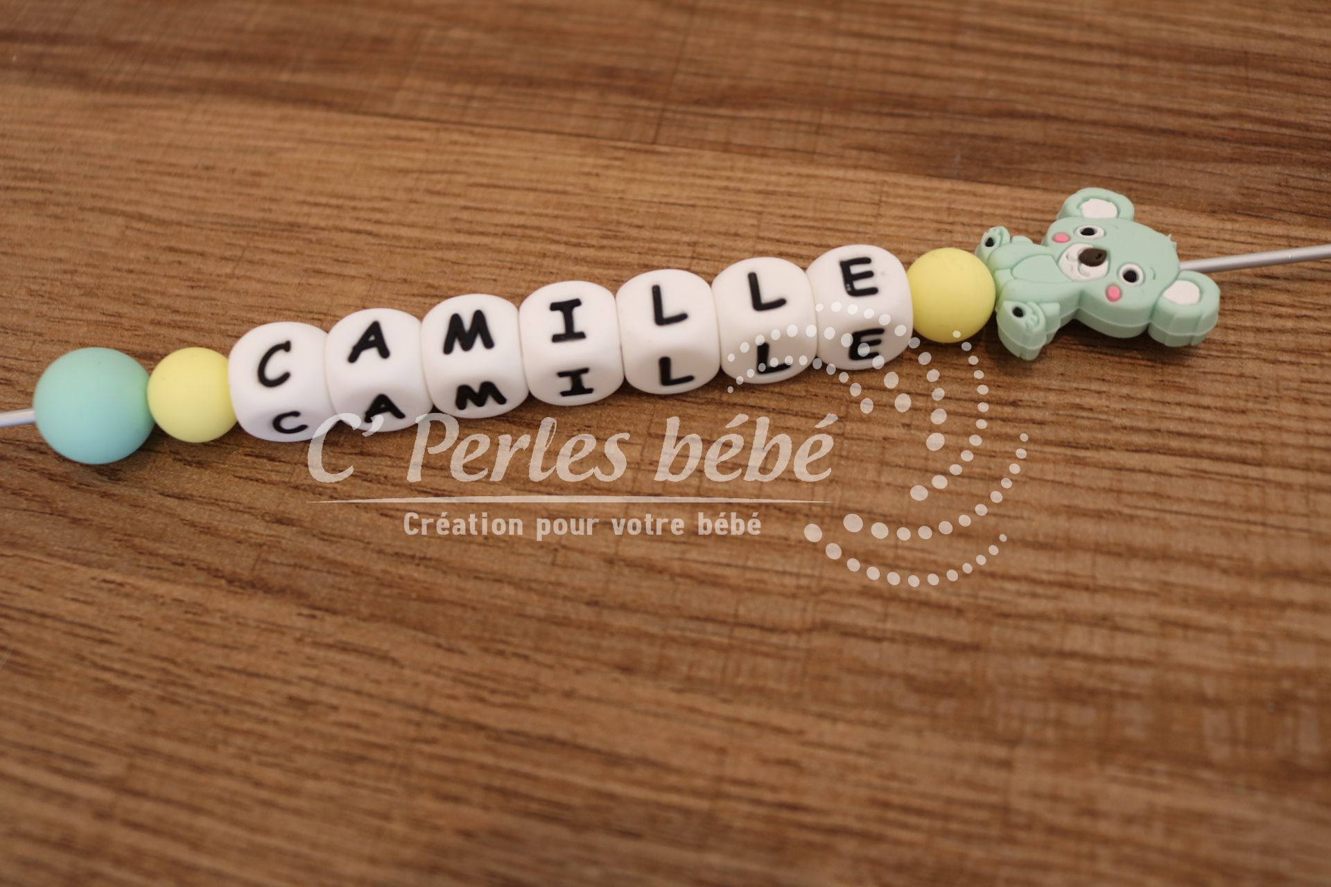 Il est disponible en différents coloris pour l’adapter à vos gouts. Les perles lettres sont disponibles en blanc, noir, bleu, rose, vert ou gris.