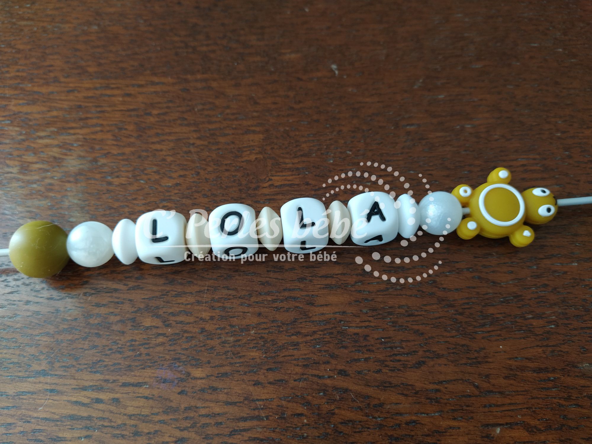 Longueur de l’attache tétine dépend du nombre de perles et de leur forme (normes 22cm max)