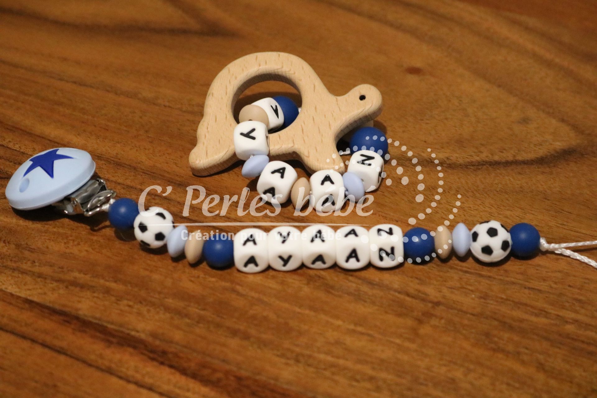 Attache tétine fait main par mes soins, modèle ballon coloré entièrement personnalisable. Perles en silicone, longueur max 22 cm (respect des normes de sécurité en vigueur). Attache tétine assorti disponible. Existe également en version attache doudou