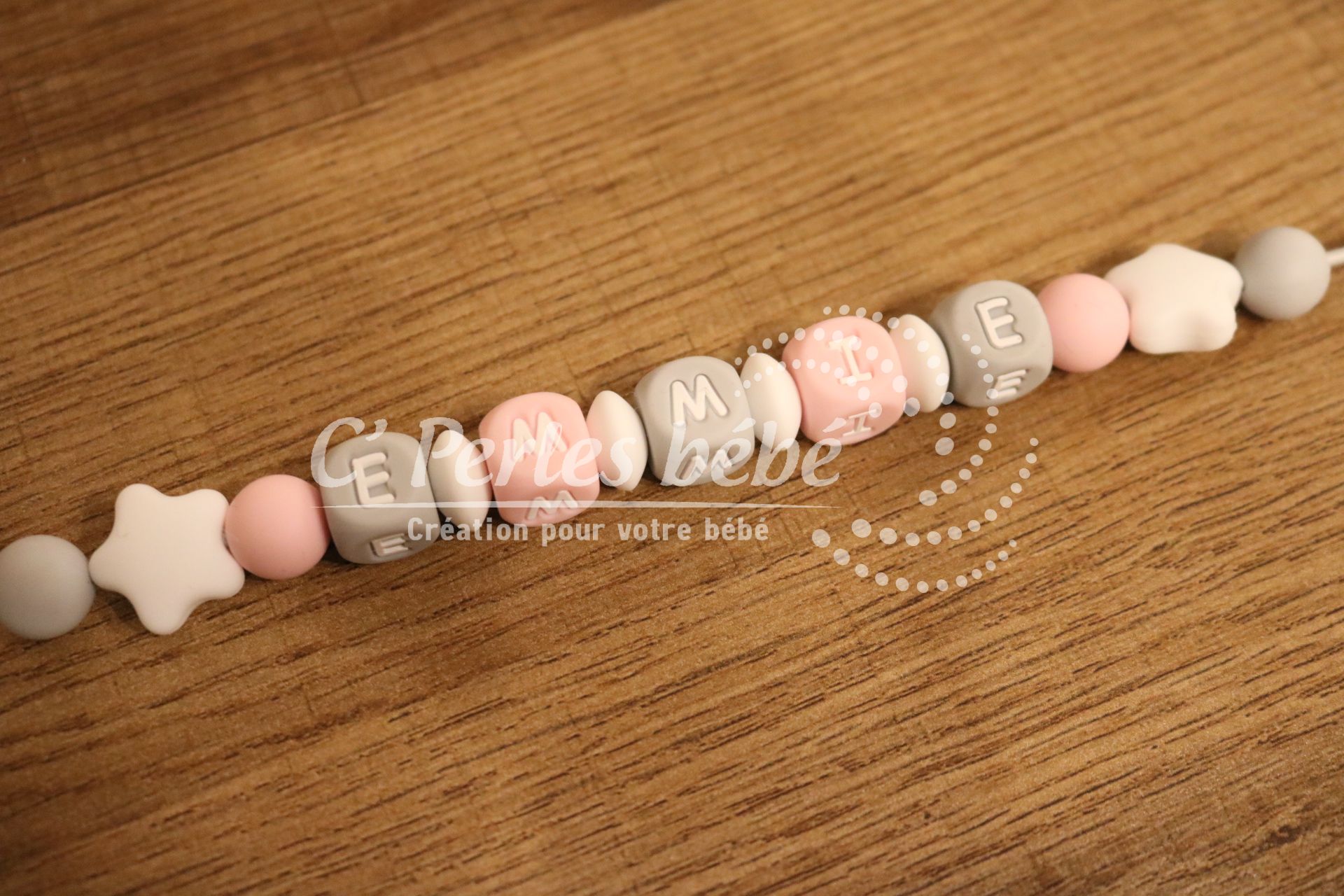 Il est disponible en différents coloris pour l’adapter à vos gouts. Les perles lettres sont disponibles en blanc, noir, bleu, rose, vert ou gris.