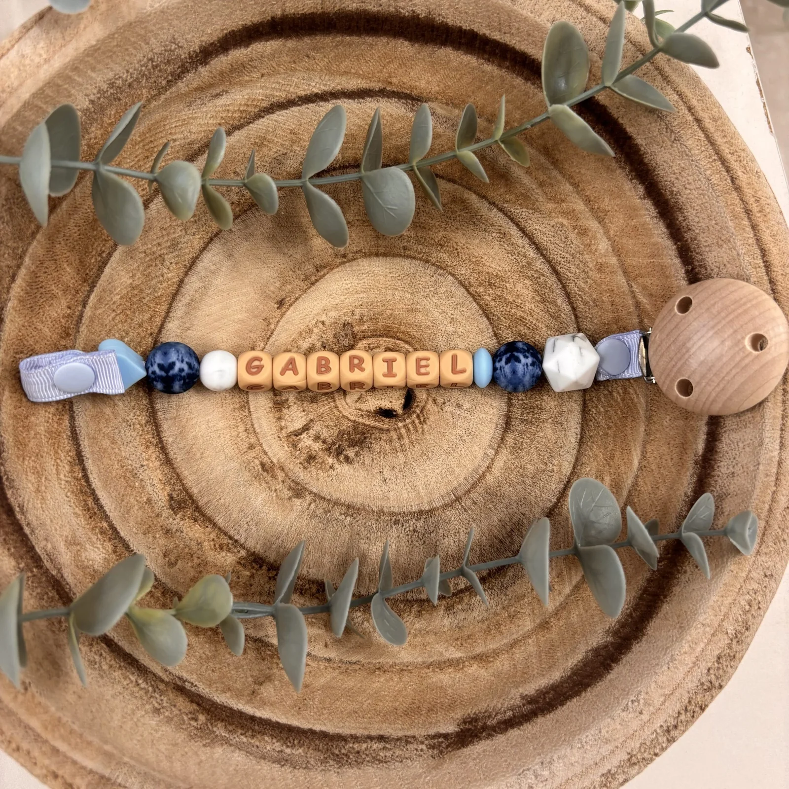 Attache tétine bleu jeans et blanc marbré