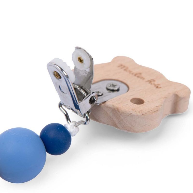 Attache-tétine hamster en bois et silicone pour ne plus perdre la sucette de bébé. Les perles de silicone sont sans danger, bébé pourra jouer avec et les mâchouiller. A clipser sur les vêtements de bébé.