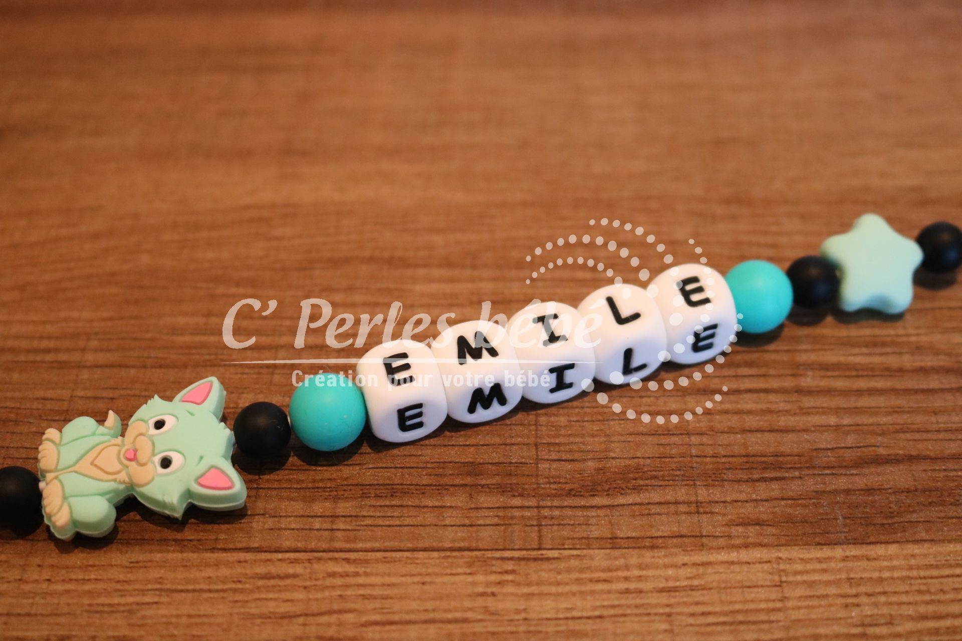 Fabriqué avec des perles en silicone, longueur max 22 cm (respect des normes de sécurité en vigueur).