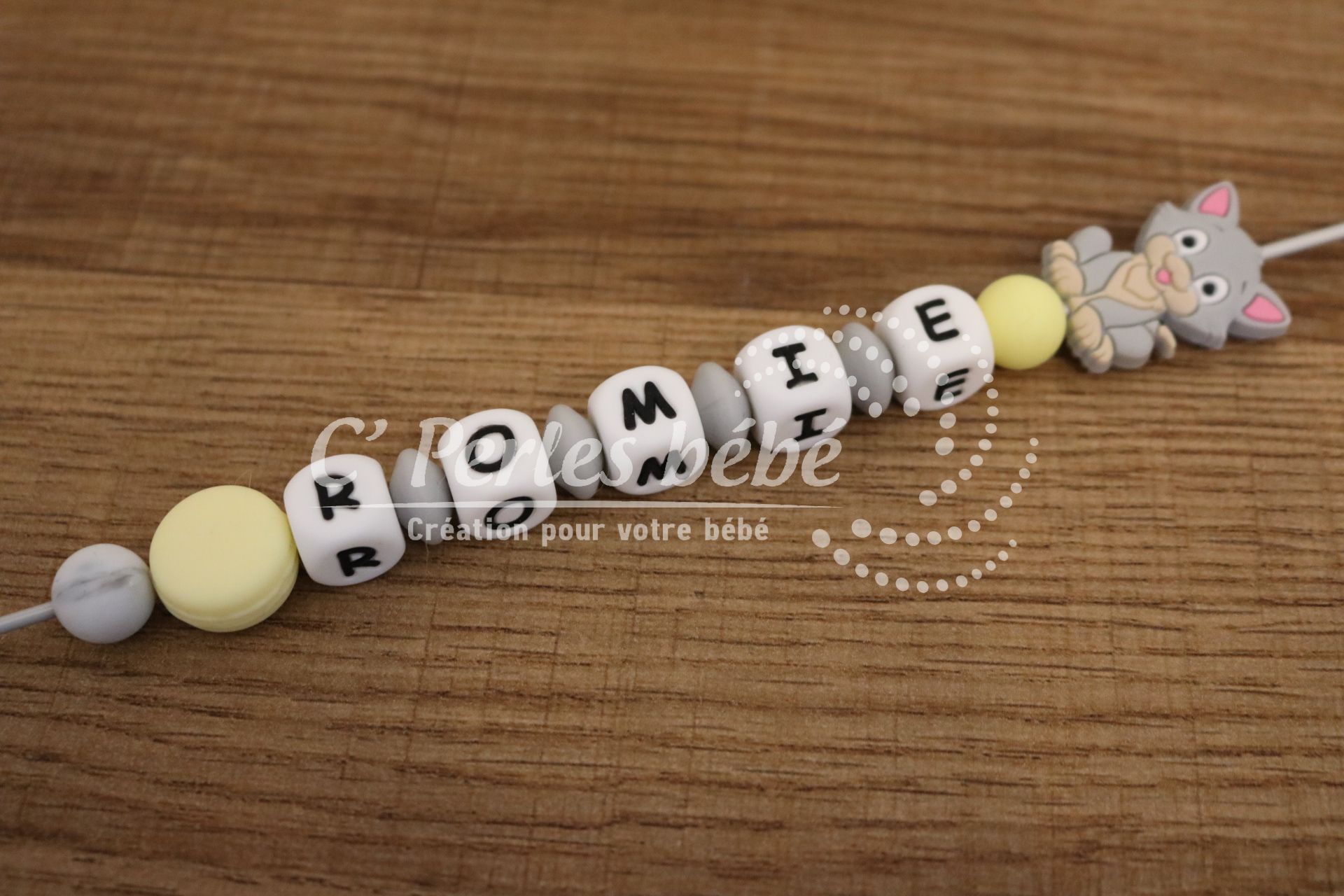 Il est disponible en différents coloris pour l’adapter à vos gouts. Les perles lettres sont disponibles en blanc, noir, bleu, rose, vert ou gris.