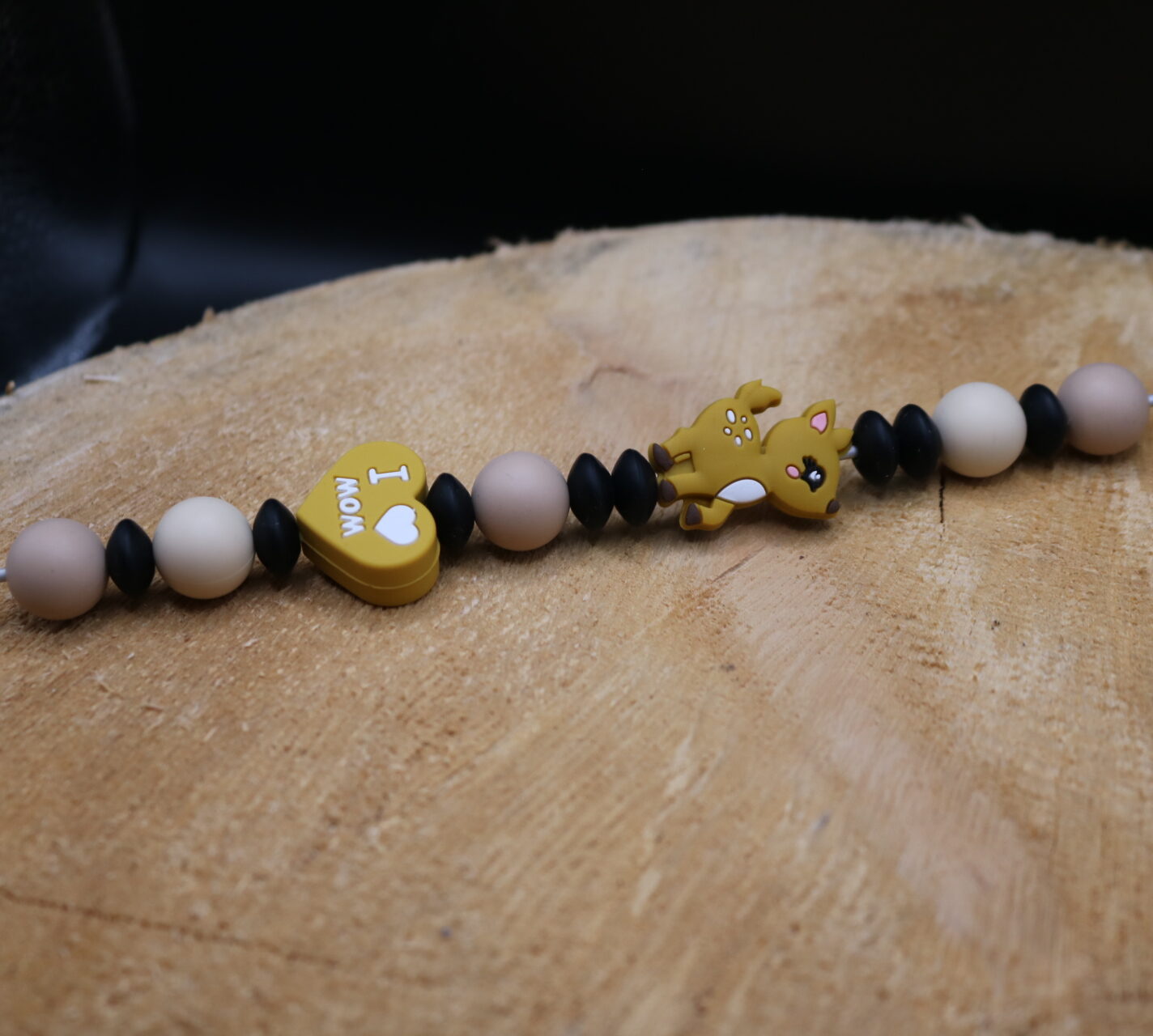 Fabriqué avec des perles en silicone, longueur max 22 cm (respect des normes de sécurité en vigueur).