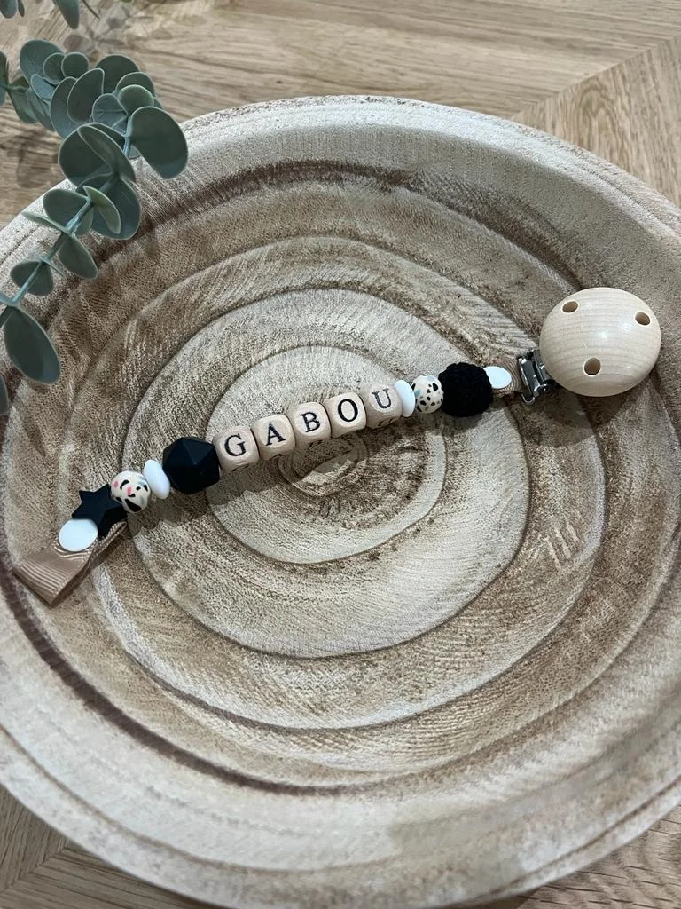 Modèle simple d’utilisation: L’attache tétine s’attache à l’anneau de la tétine grâce à un système de boutons pression.