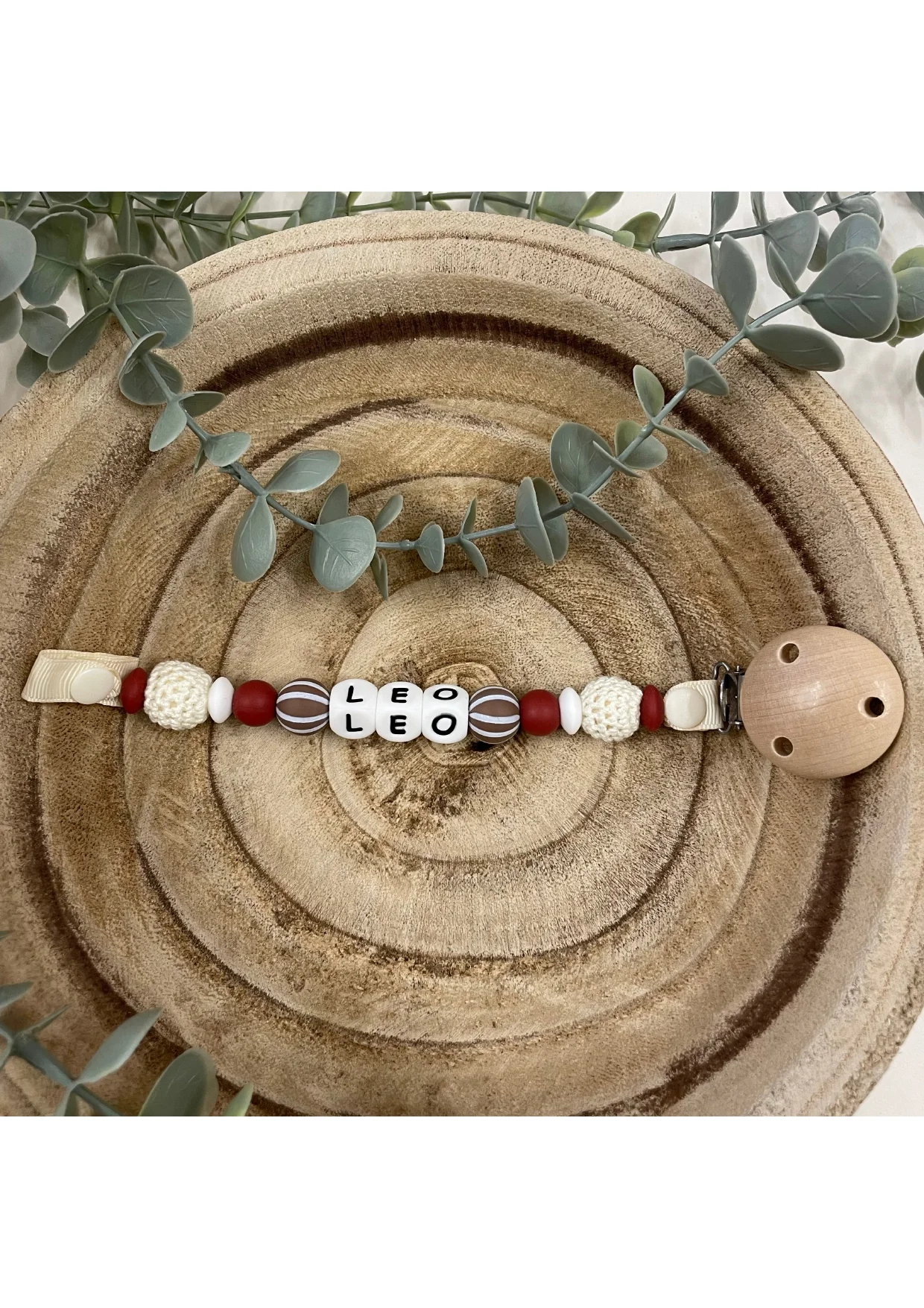 Modèle simple d’utilisation: L’attache tétine s’attache à l’anneau de la tétine grâce à un système de boutons pression.