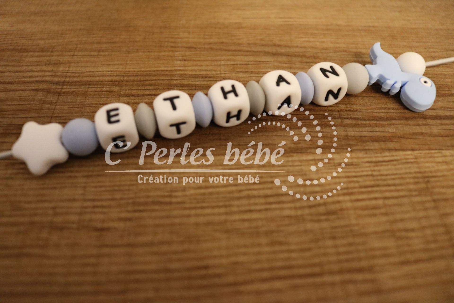 Il est disponible en différents coloris pour l’adapter à vos gouts. Les perles lettres sont disponibles en blanc, noir, bleu, rose, vert ou gris.