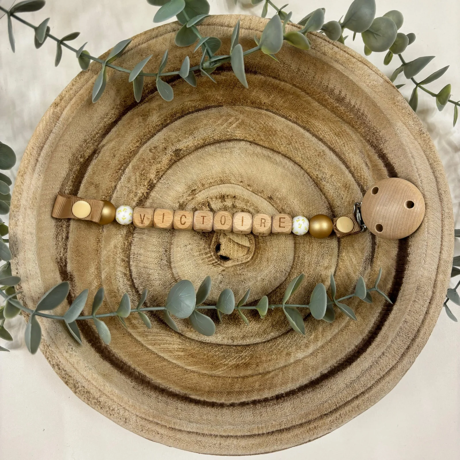Attache tétine doré
