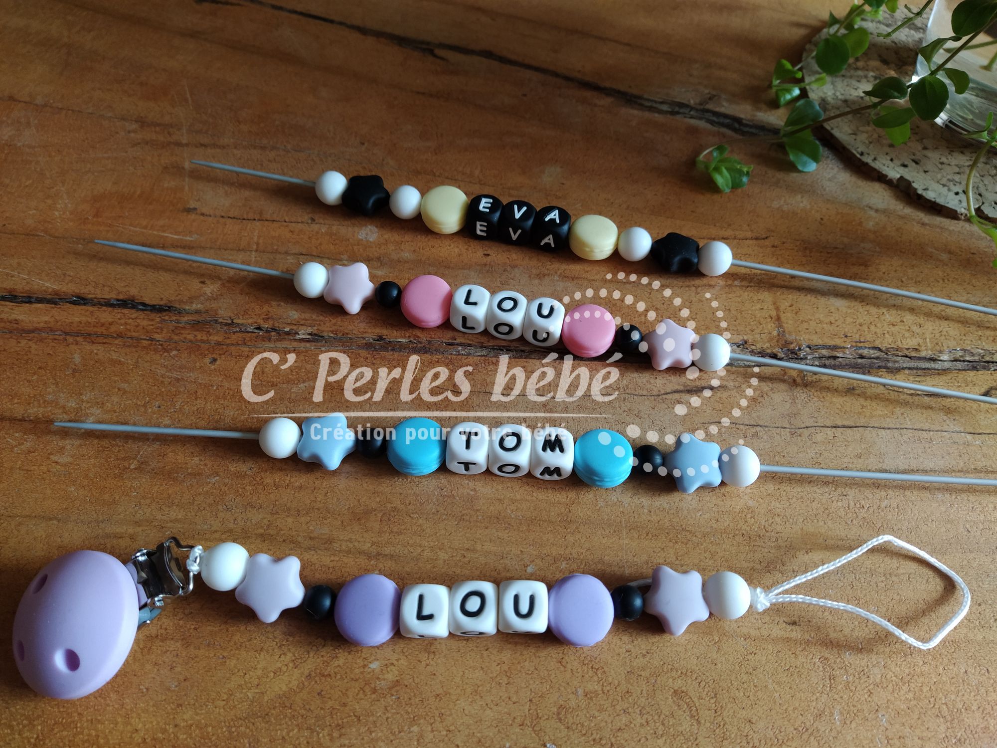 Longueur de l’attache tétine dépend du nombre de perles et de leur forme (normes 22cm max)