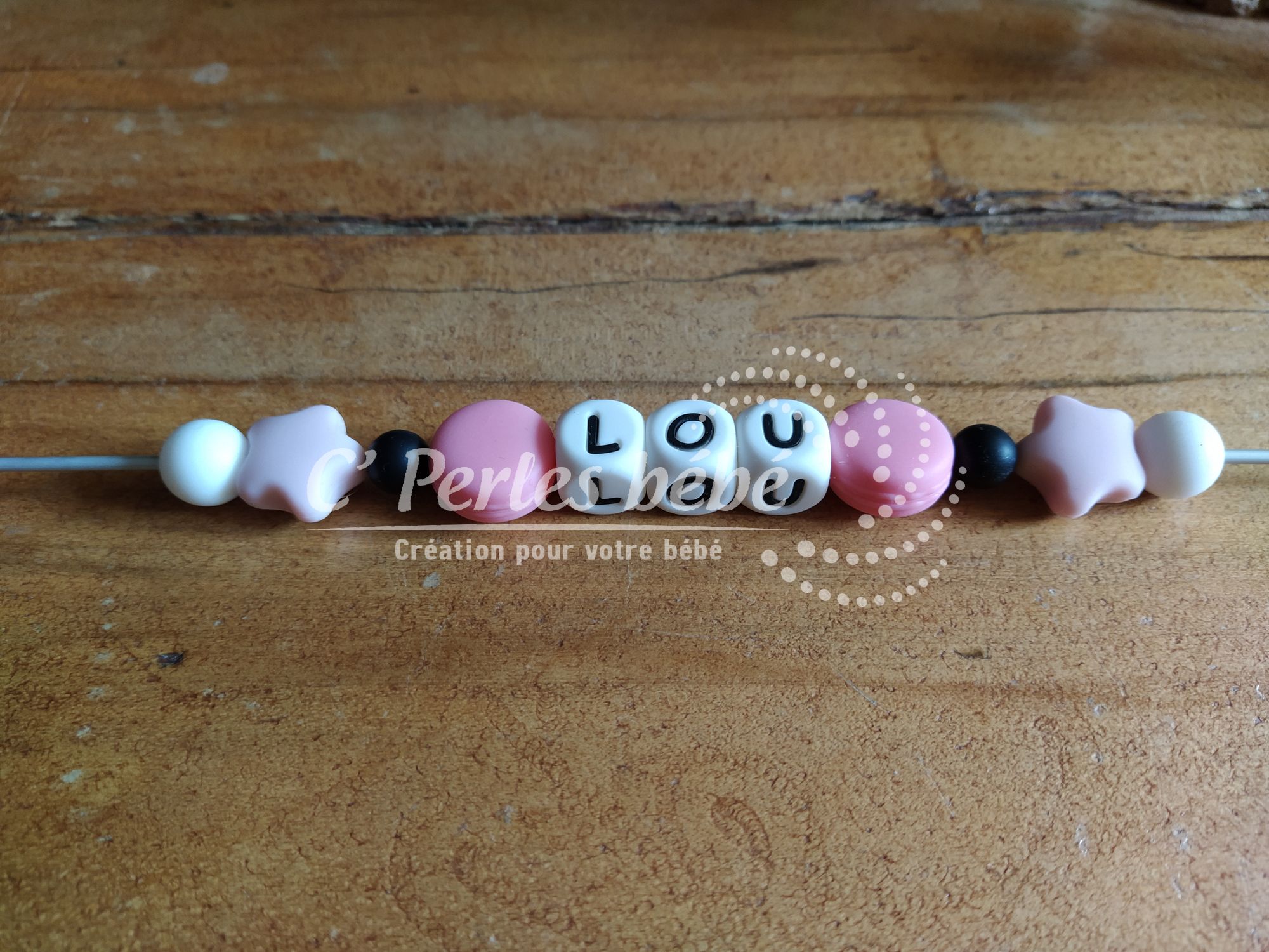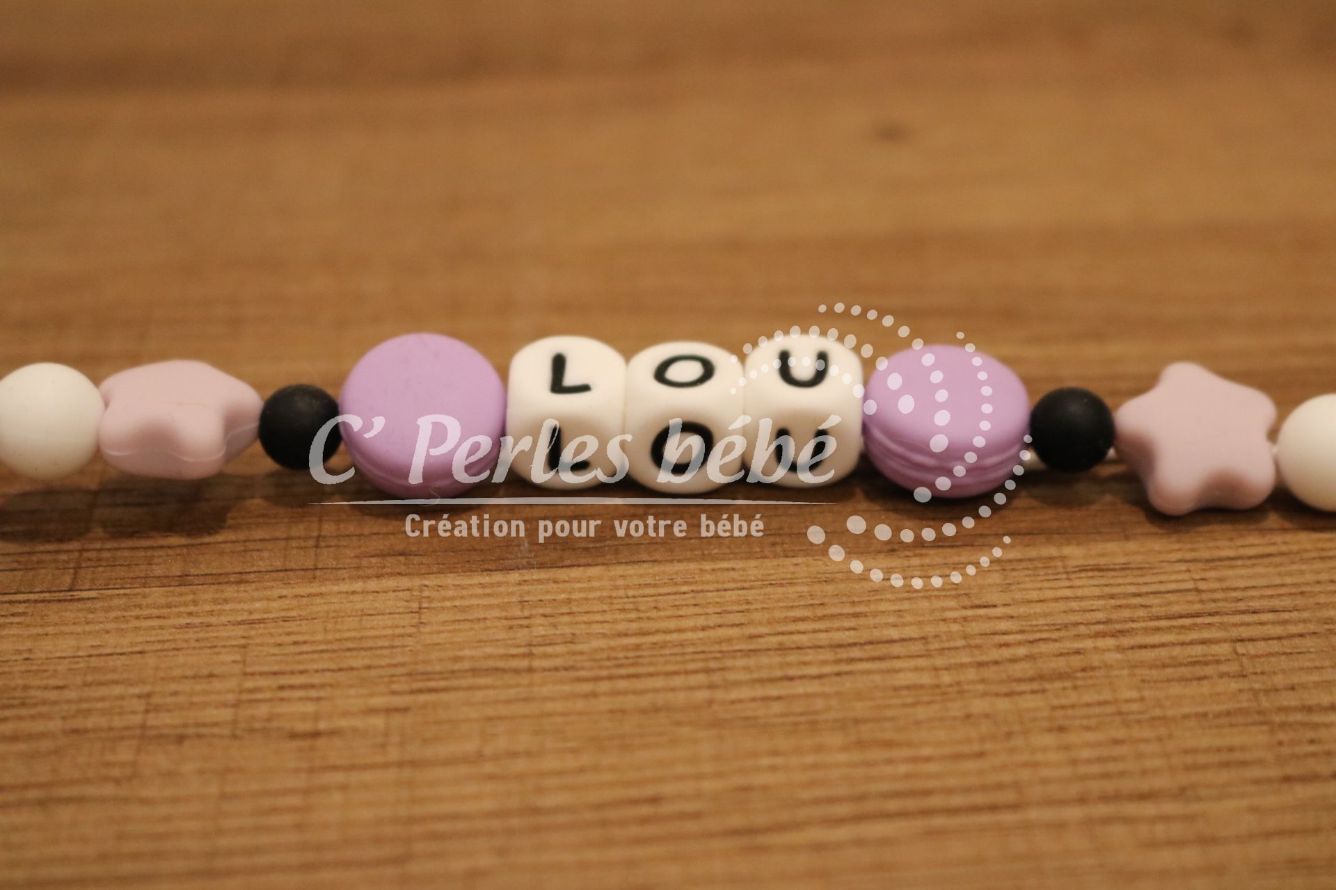 Il est disponible en différents coloris pour l’adapter à vos gouts. Les perles lettres sont disponibles en blanc, noir, bleu, rose, vert ou gris.
