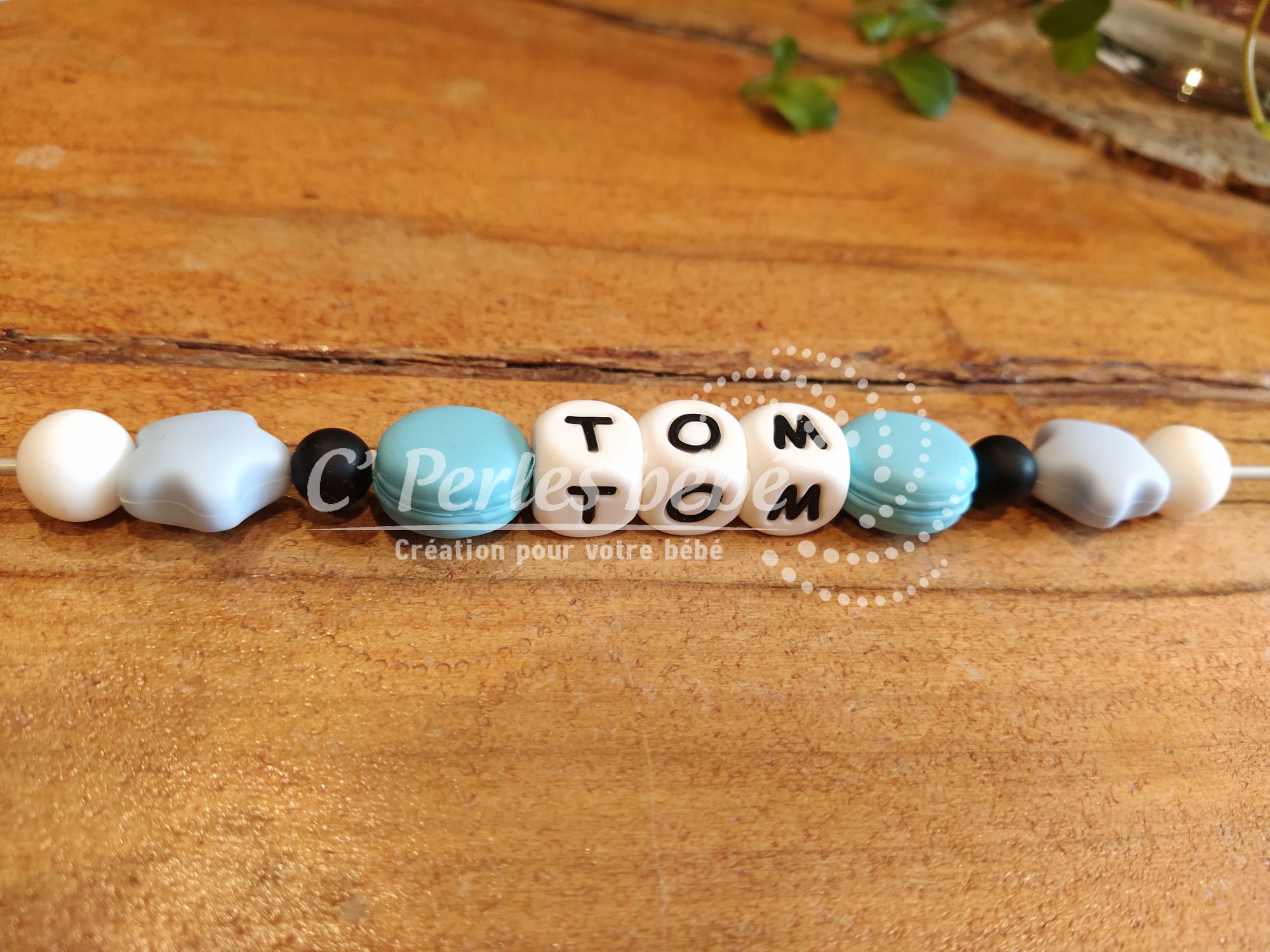 Attache sucette fait main par mes soins, entièrement personnalisable, modèle étoiles et macarons. Perles en silicone, longueur max 22 cm (respect des normes de sécurité en vigueur). Adaptateur tétine MAM en option.