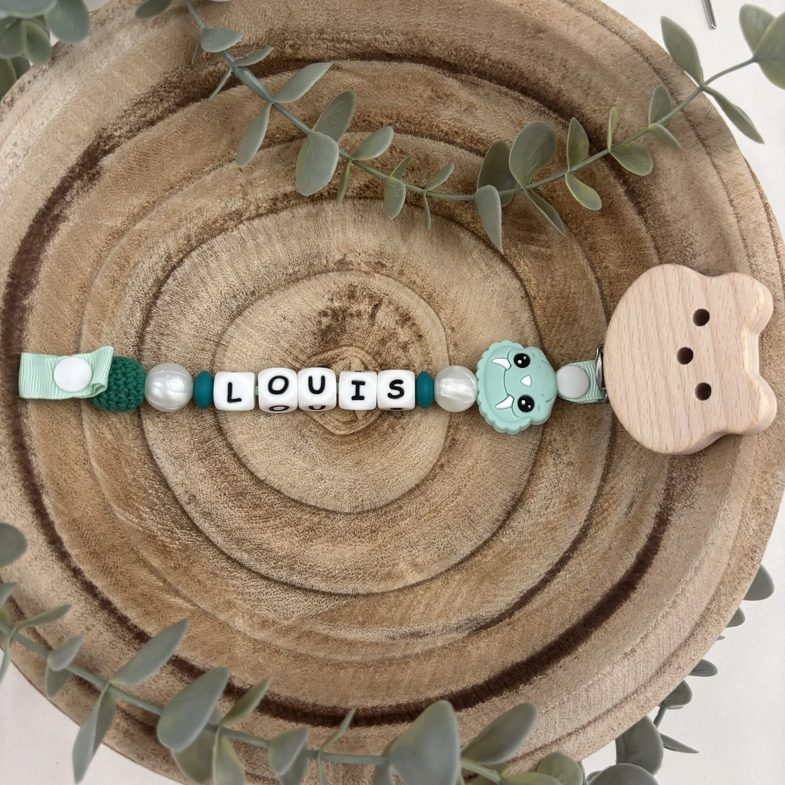 Attache tétine fantaisie dinosaure et vert