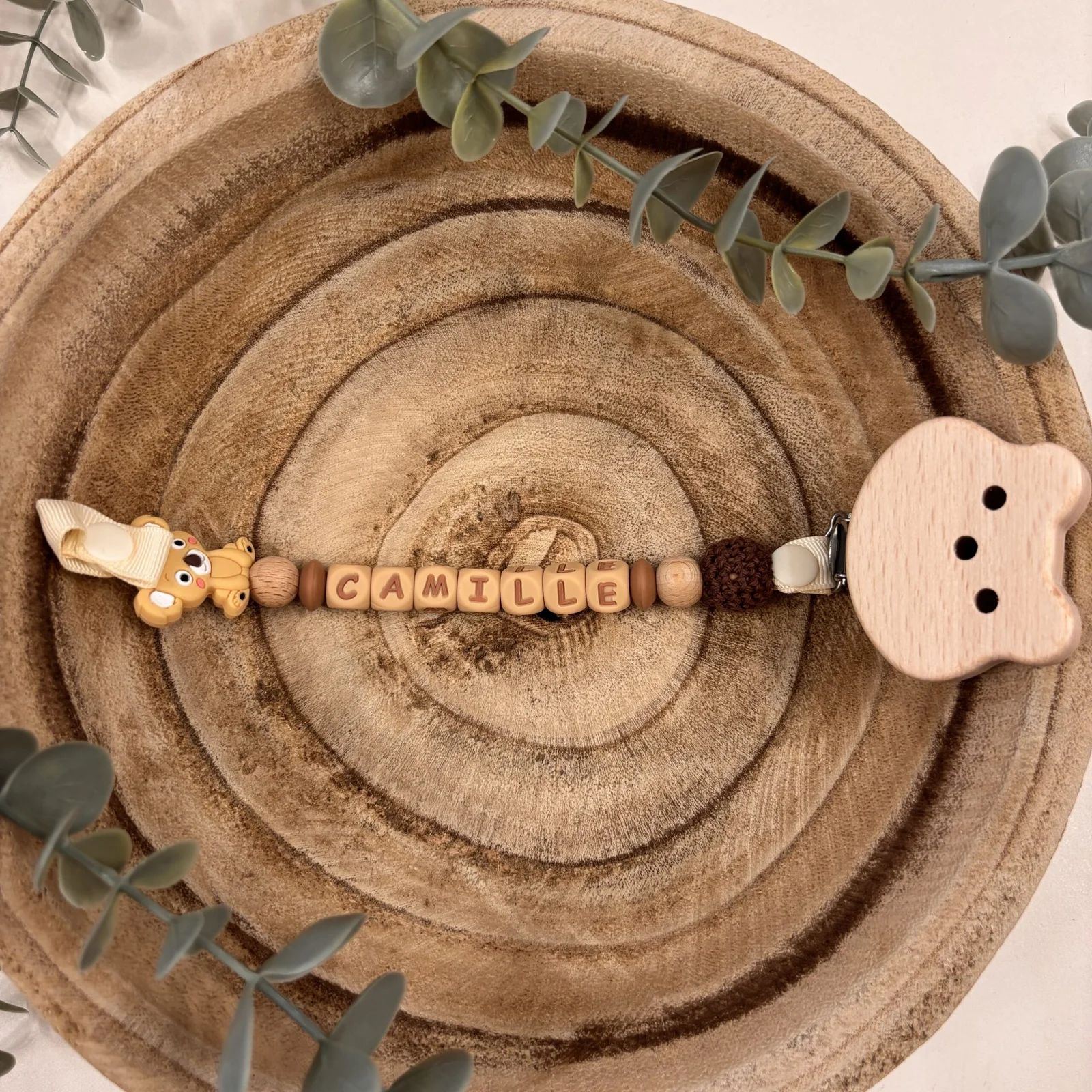 Modèle simple d’utilisation: L’attache jouet s’attache à l’anneau de la tétine grâce à un système de boutons pression.