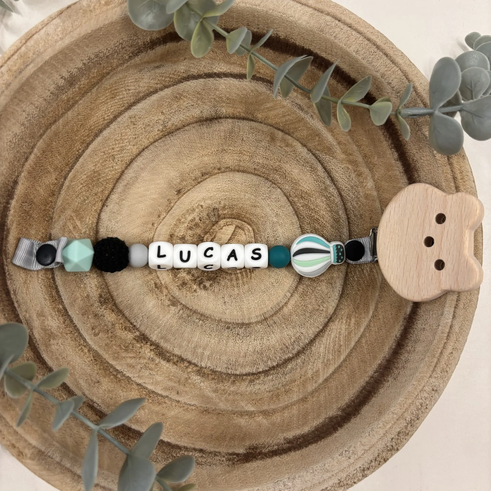Soyez le premier à laisser votre avis sur “Attache tétine fantaisie montgolfière et noir”
