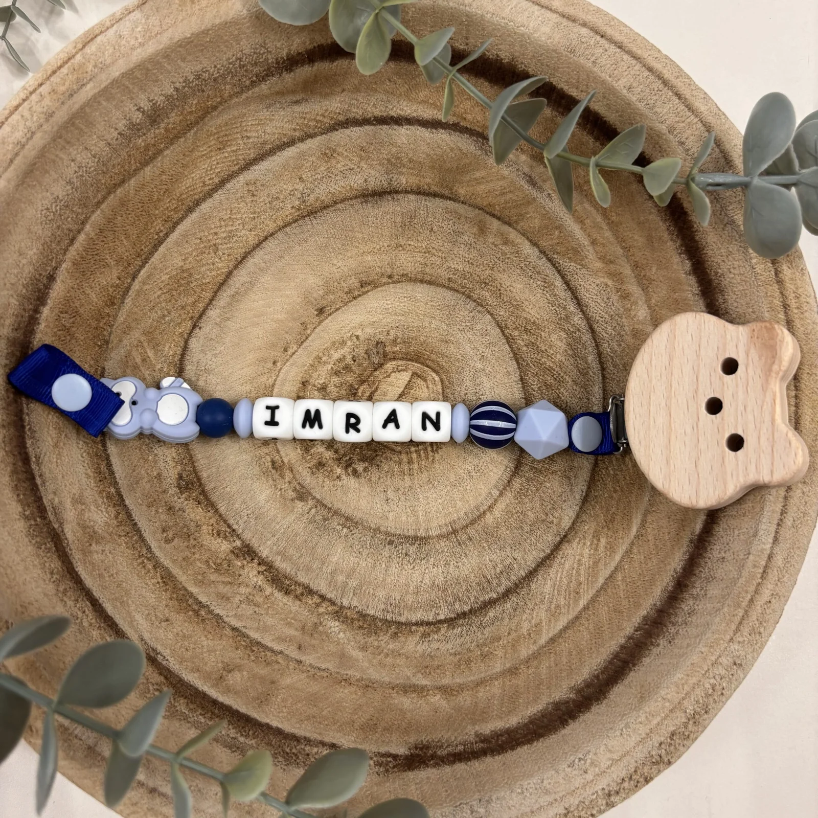 Modèle simple d’utilisation: L’attache jouet s’attache à l’anneau de la tétine grâce à un système de boutons pression.