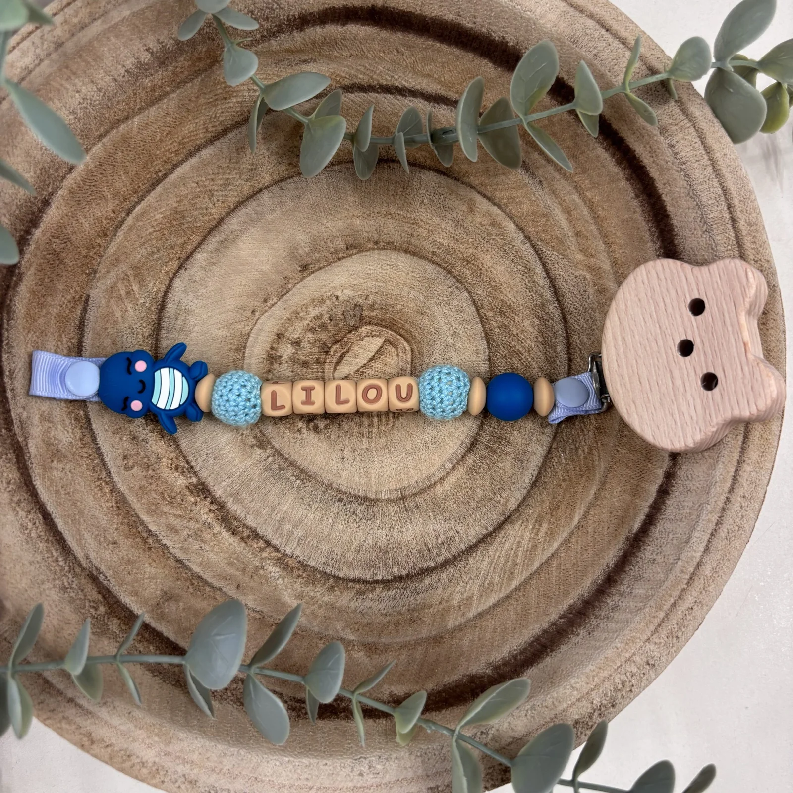 Attache tétine fantaisie tortue et bleu canard