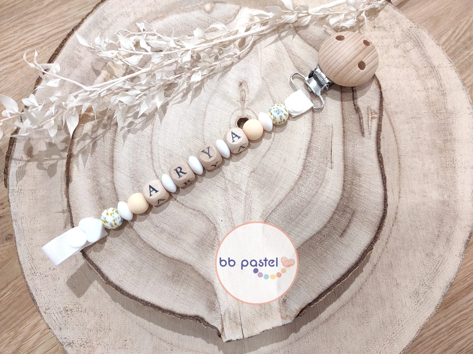 Attache tétine fleurs des champs / crème
