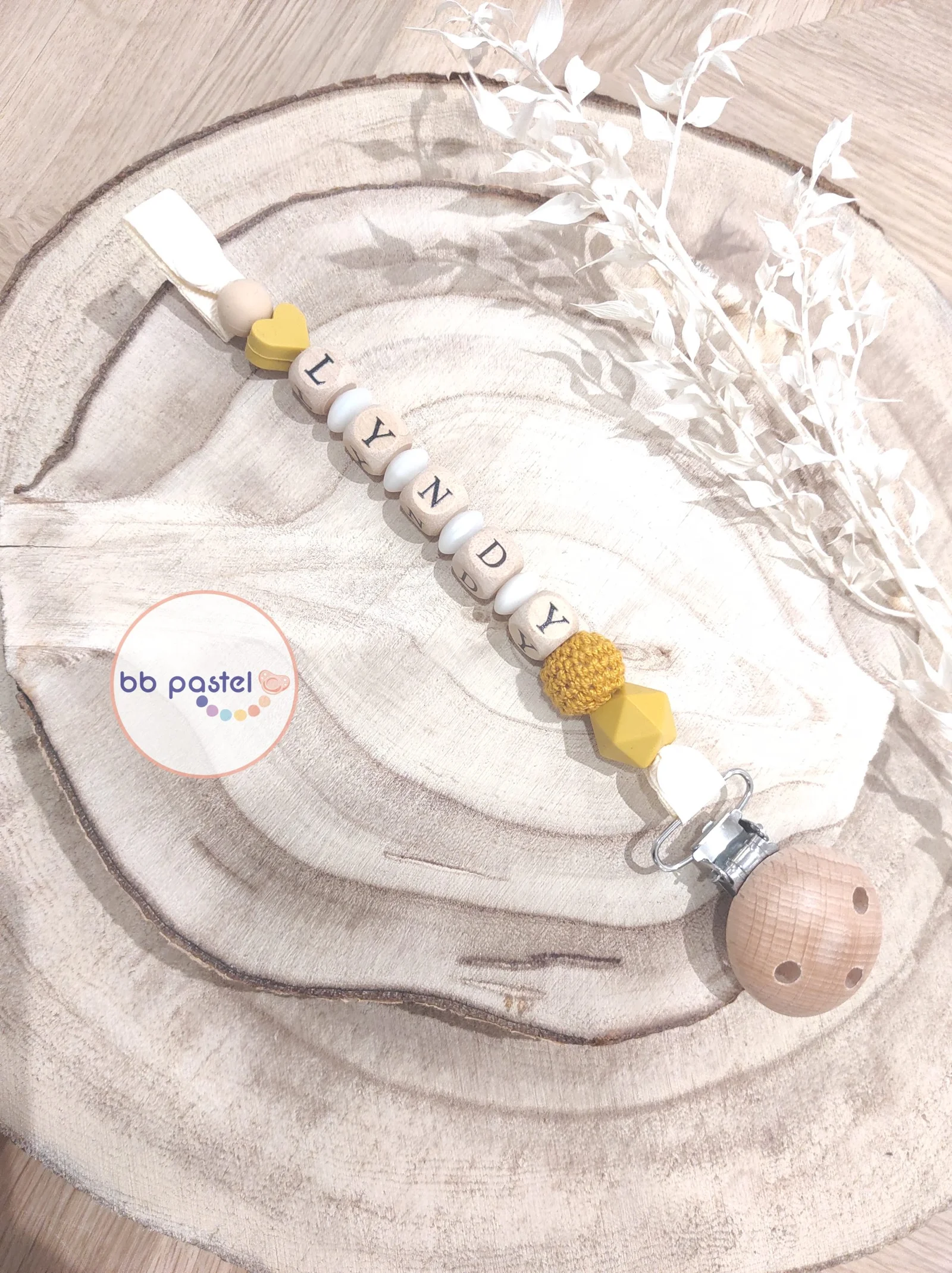 Attache tétine jaune moutarde