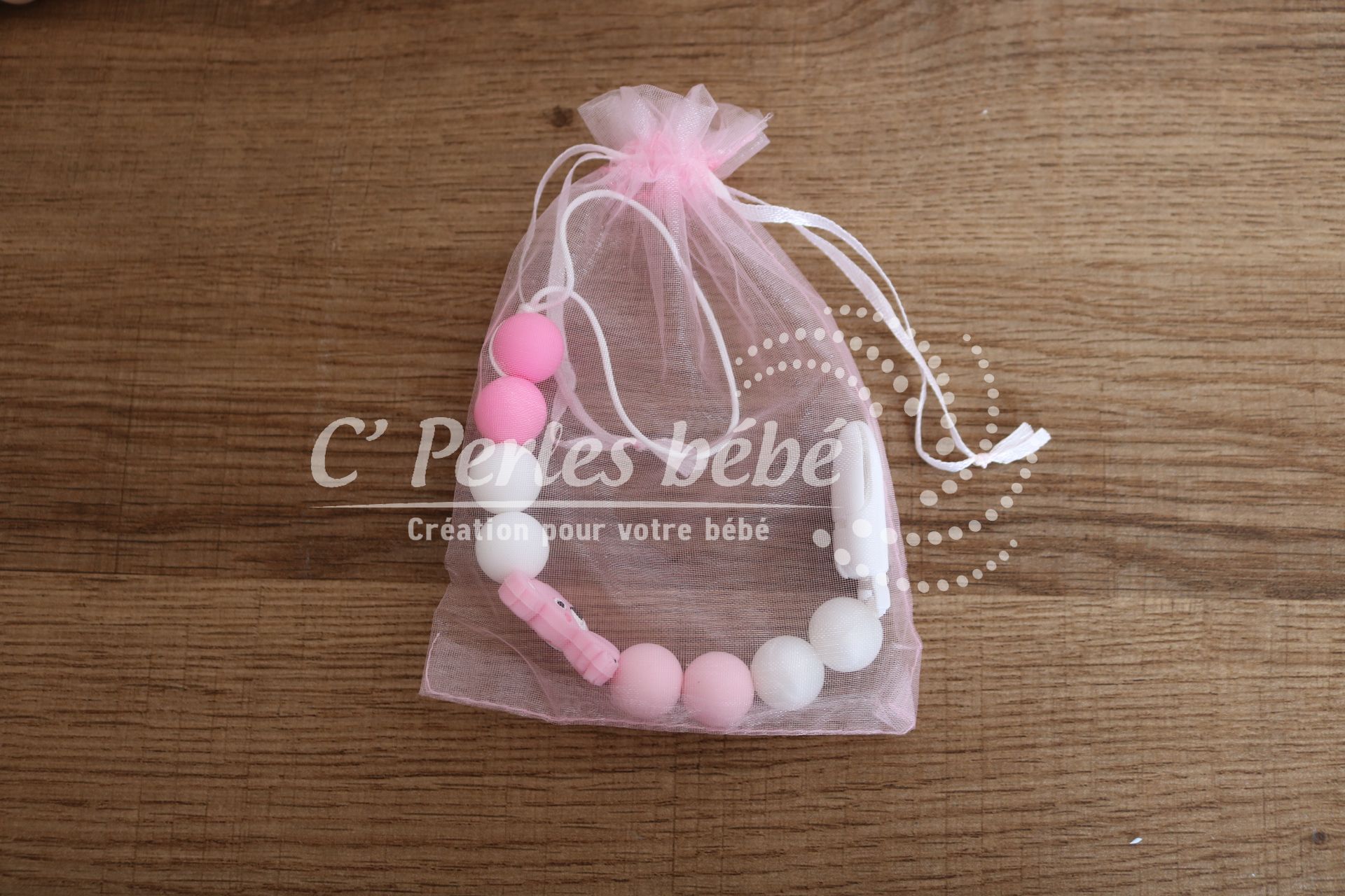 Longueur de l’attache tétine dépend du nombre de perles et de leur forme (normes 22cm max)