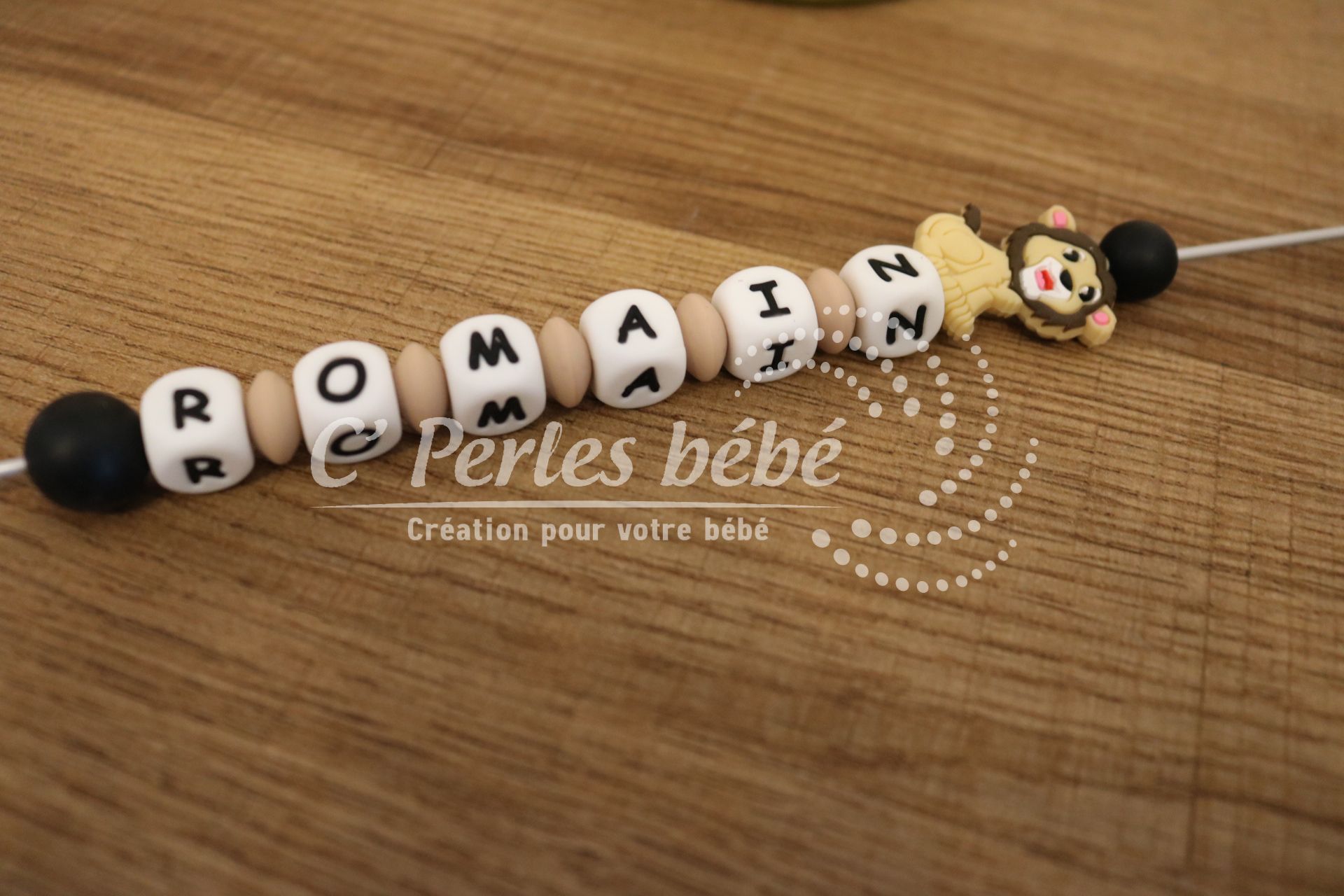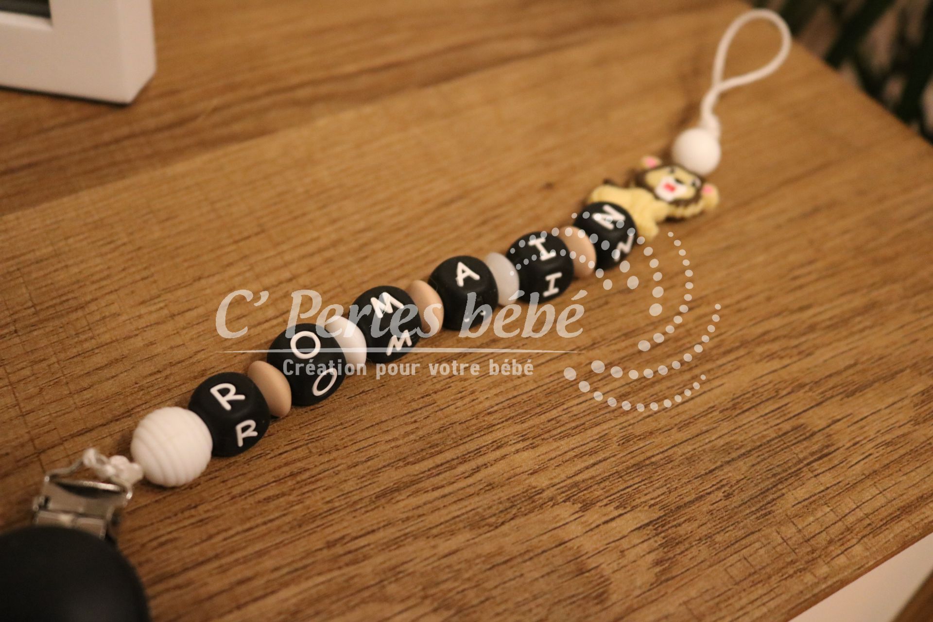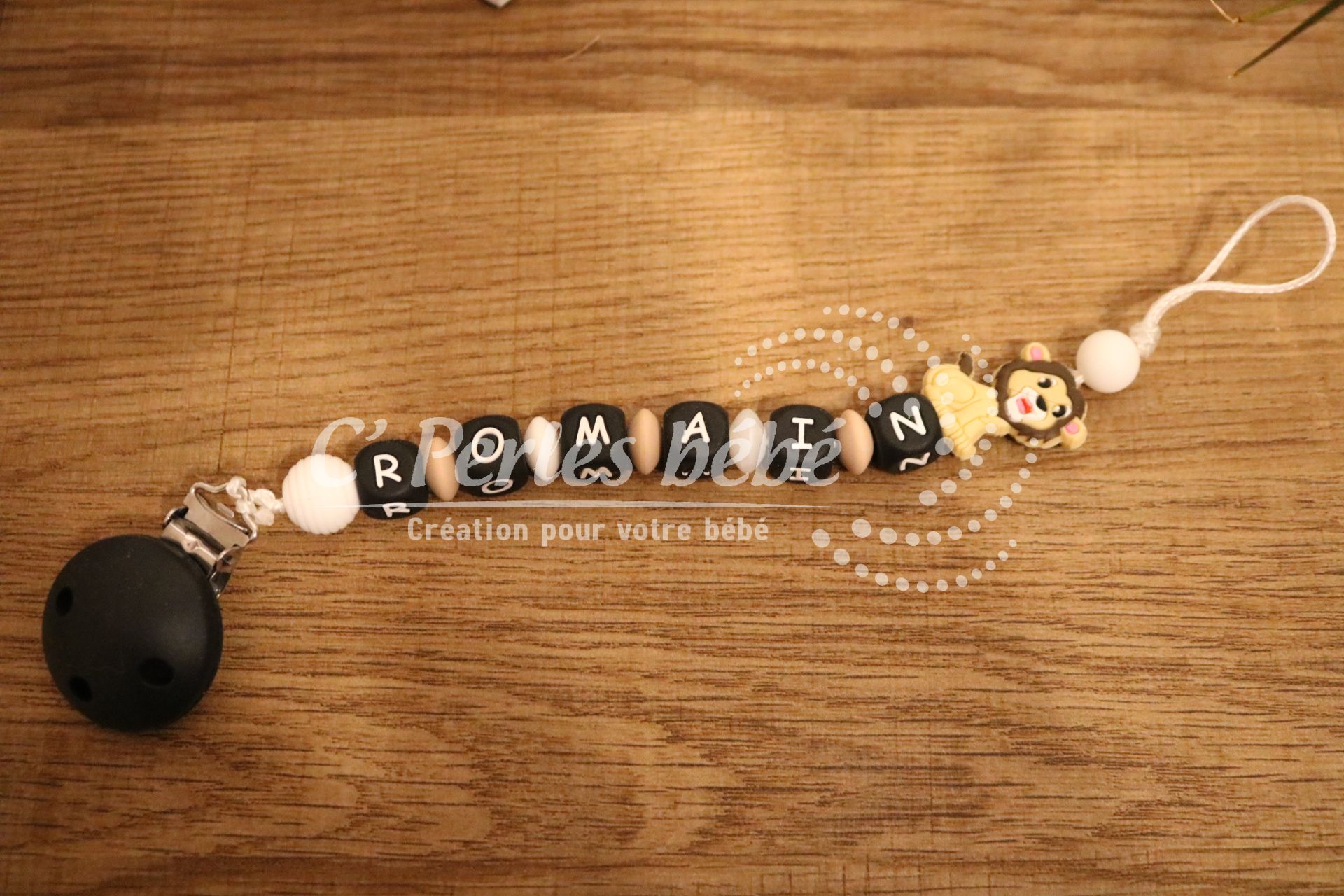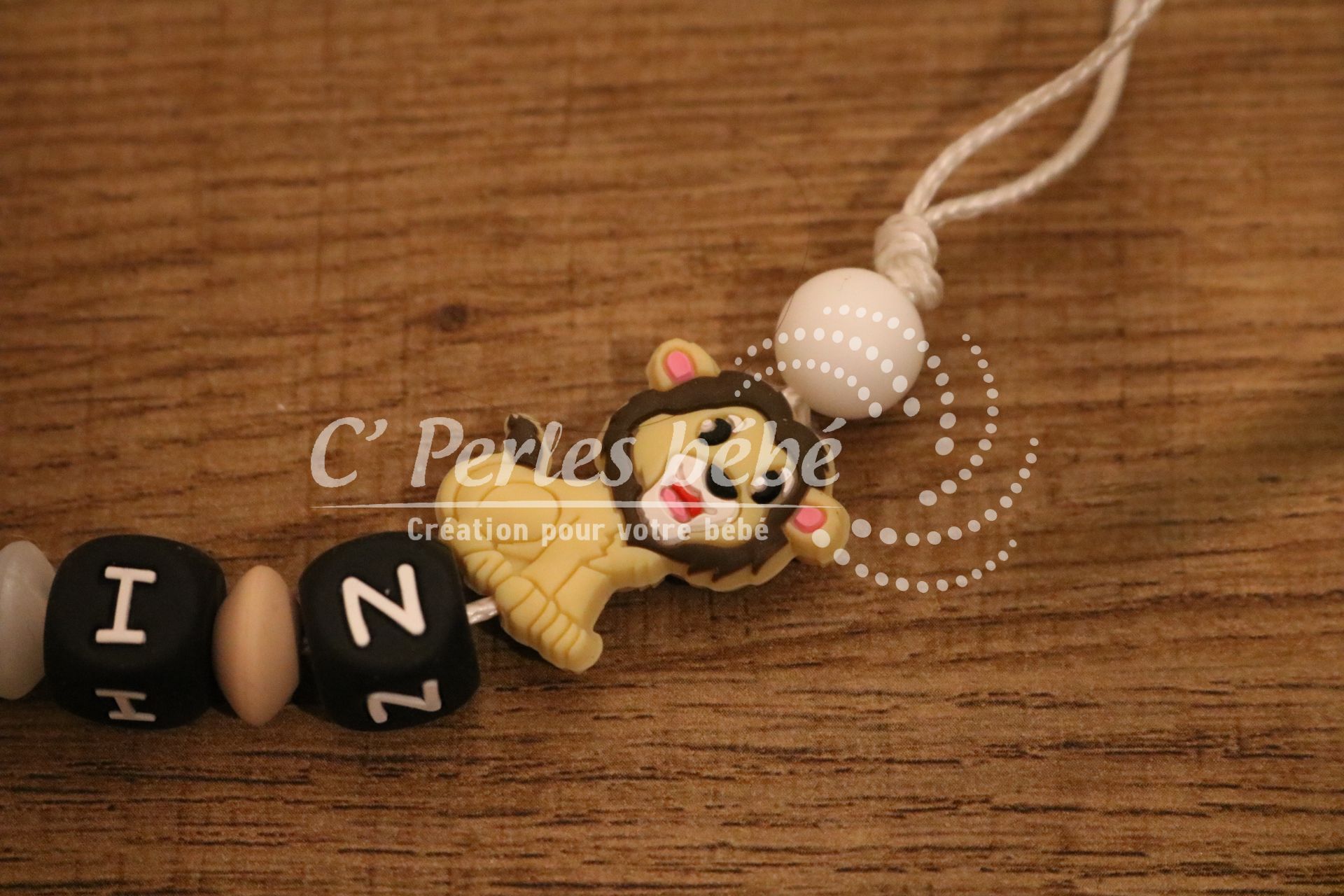 Attache sucette fait main par mes soins, modèle lion entièrement personnalisable. Perles en silicone, longueur max 22 cm (respect des normes de sécurité en vigueur). Adaptateur tétine MAM en option.