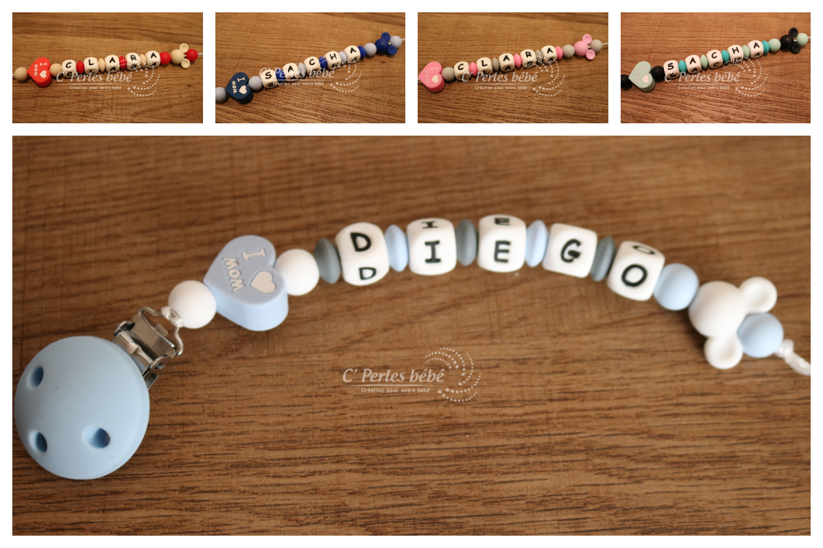 Longueur de l’attache tétine dépend du nombre de perles et de leur forme (normes 22cm max)