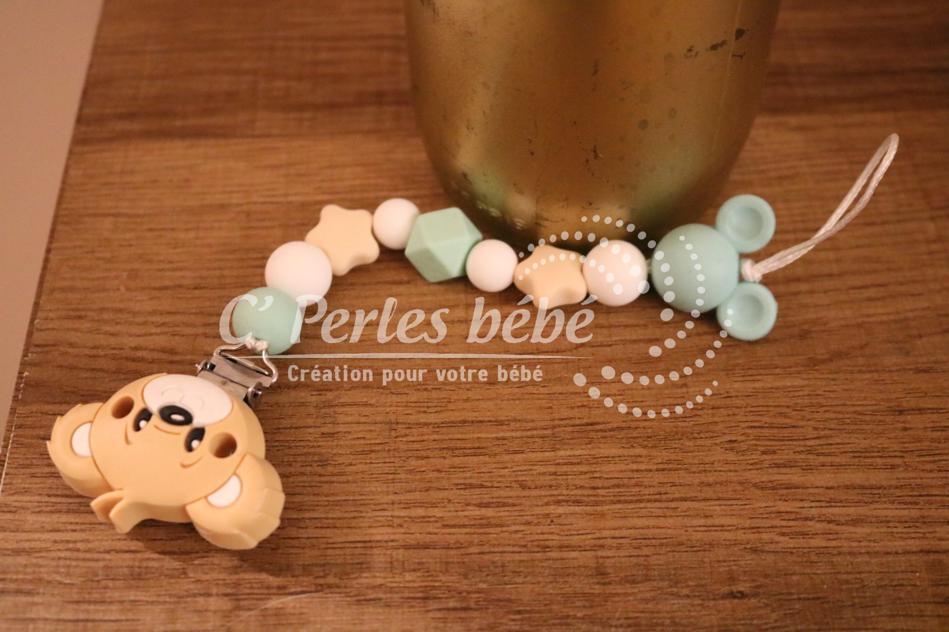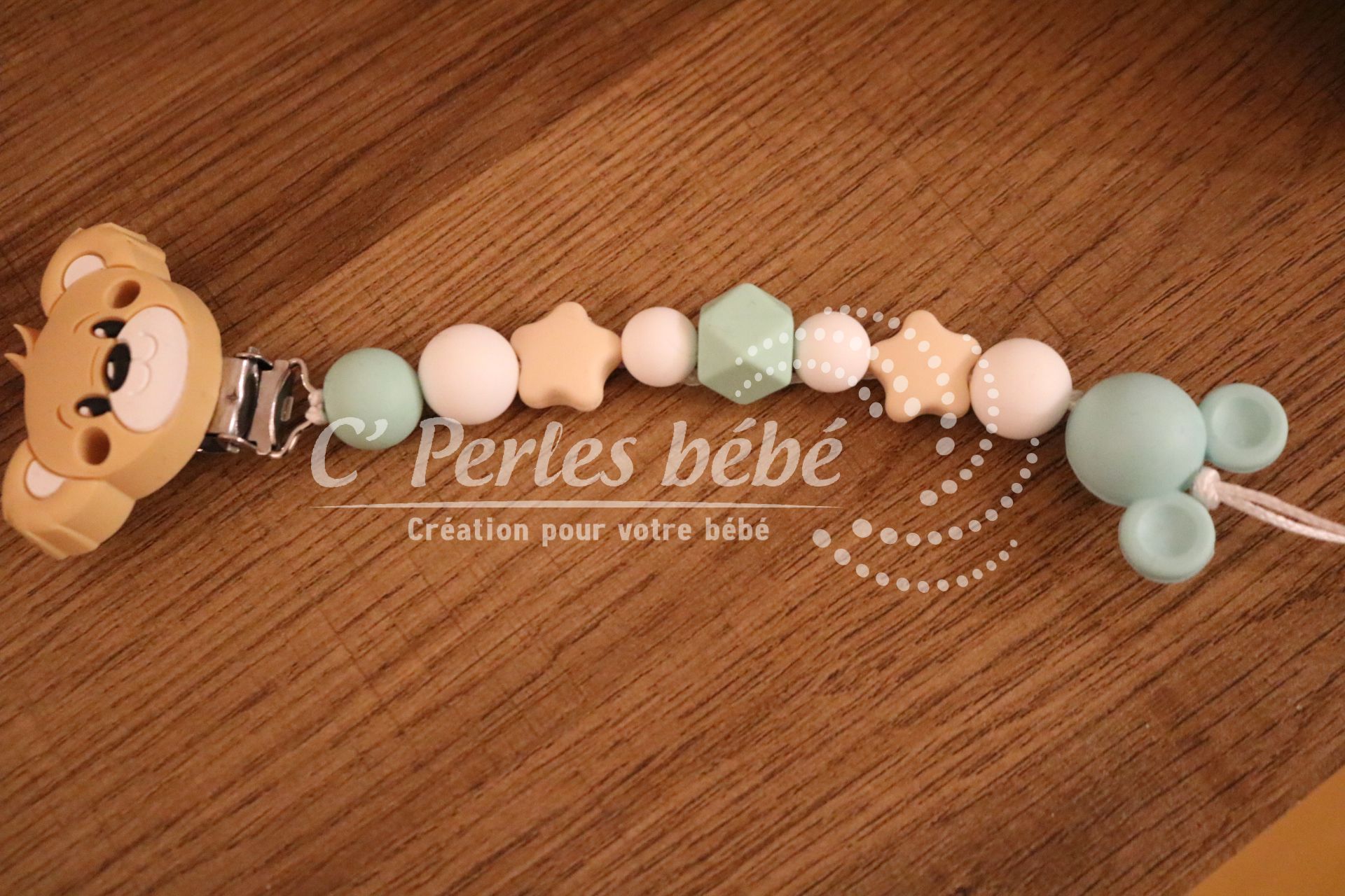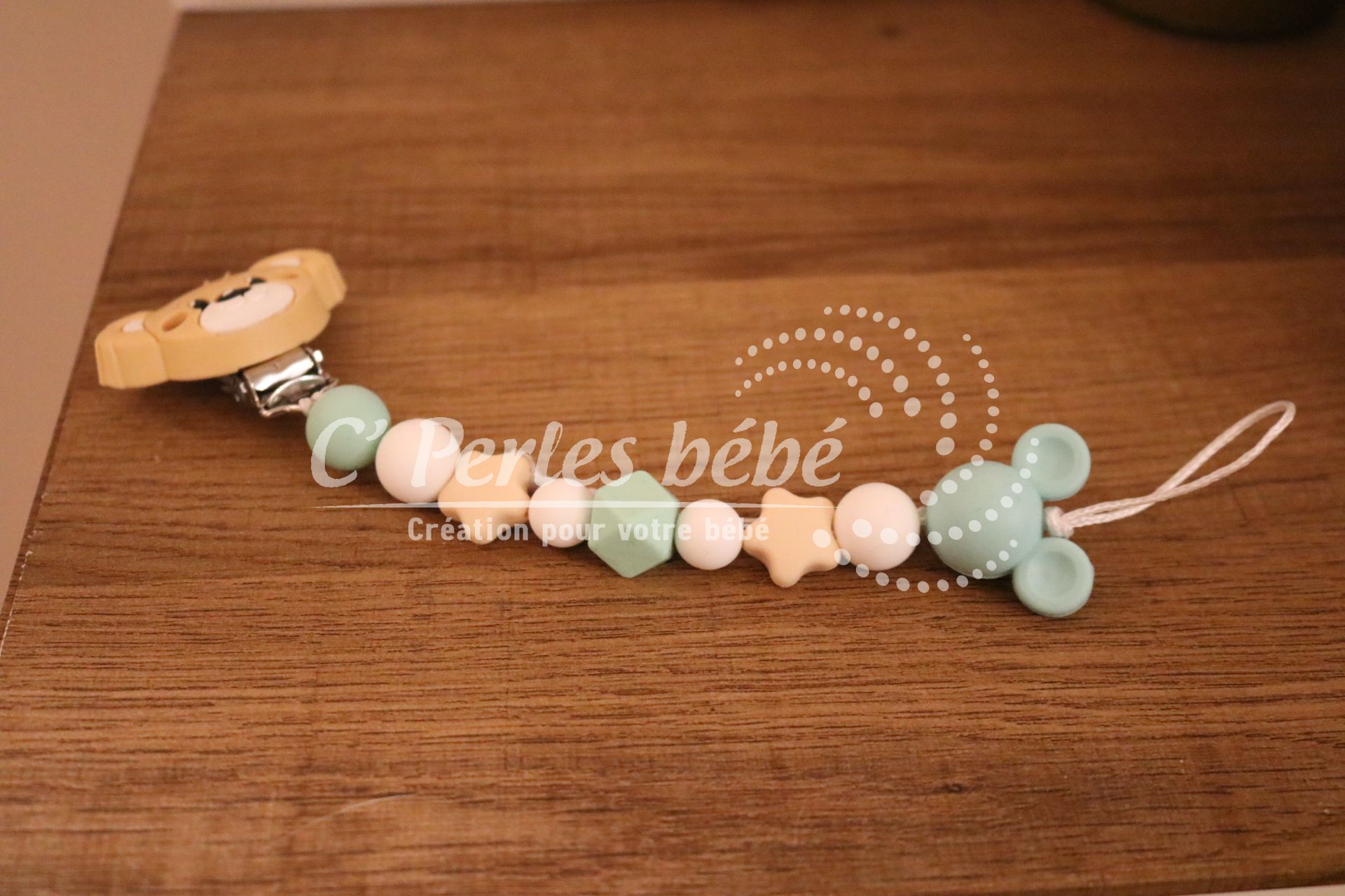 Longueur de l’attache tétine dépend du nombre de perles et de leur forme (normes 22cm max)