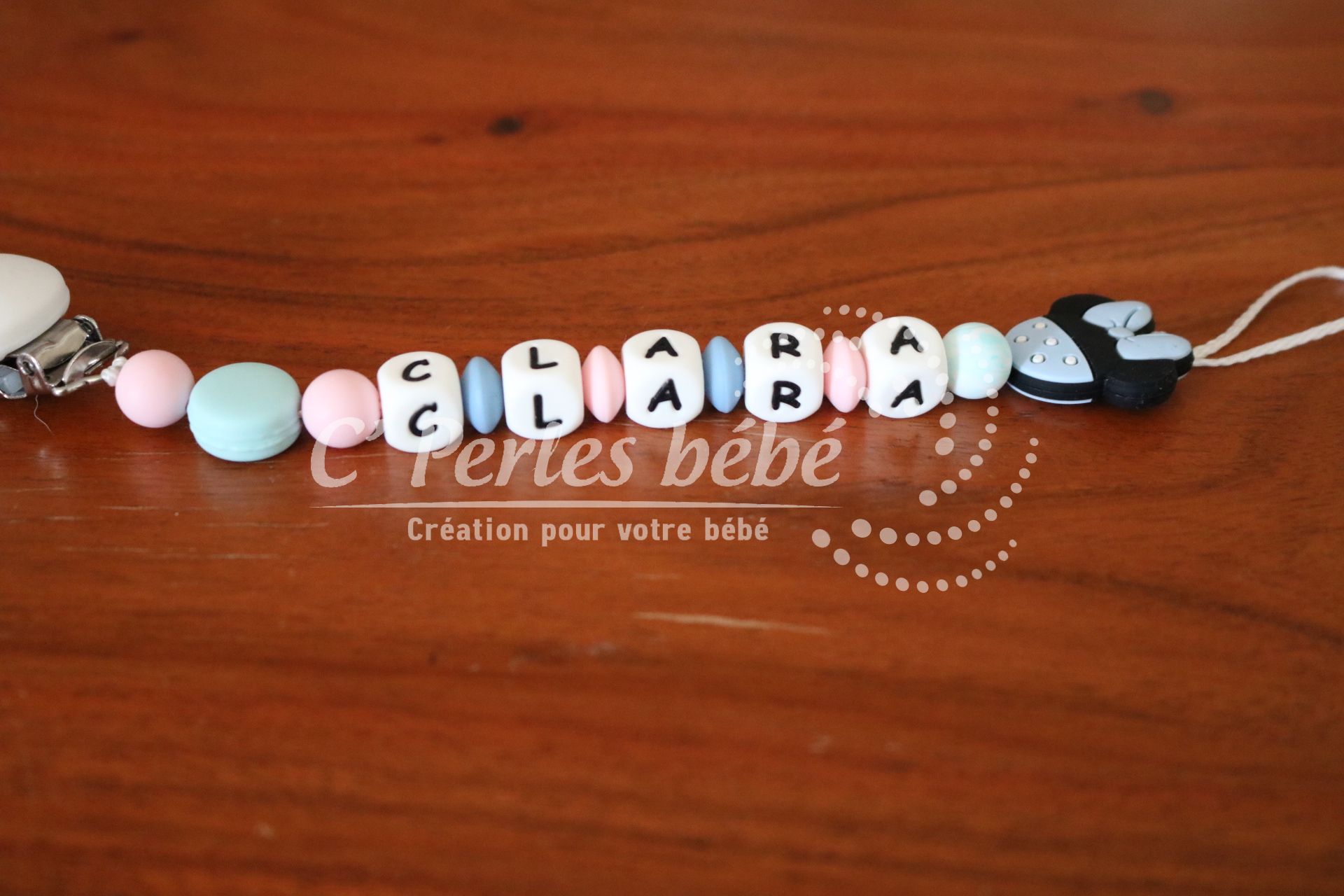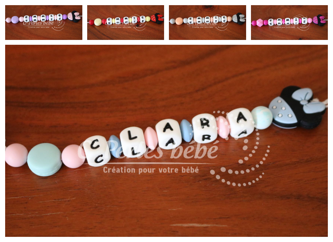 Longueur de l’attache tétine dépend du nombre de perles et de leur forme (normes 22cm max)