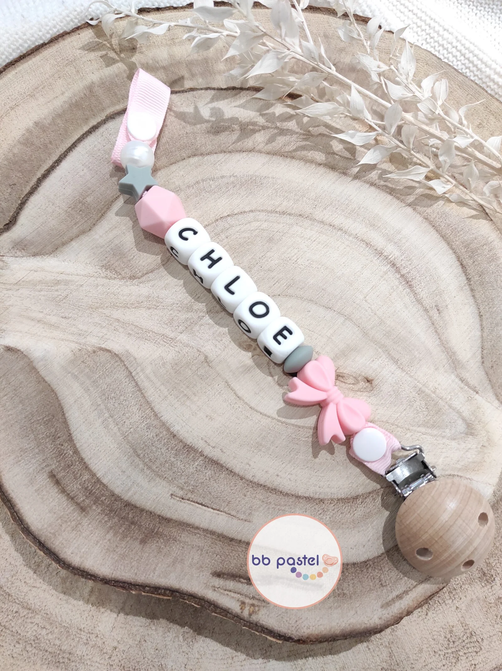 Attache tétine nœud rose