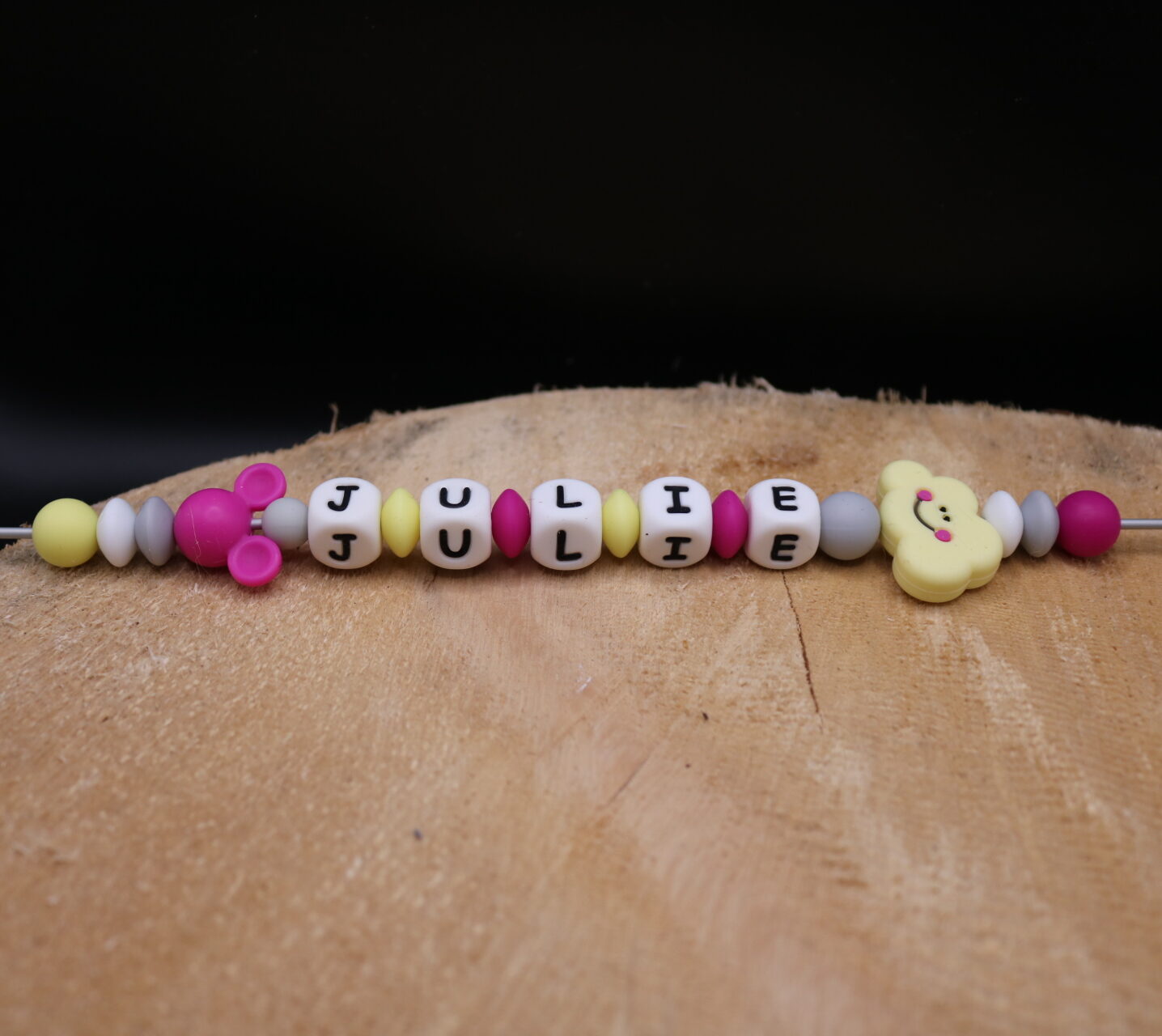 Fabriqué avec des perles en silicone, longueur max 22 cm (respect des normes de sécurité en vigueur).
