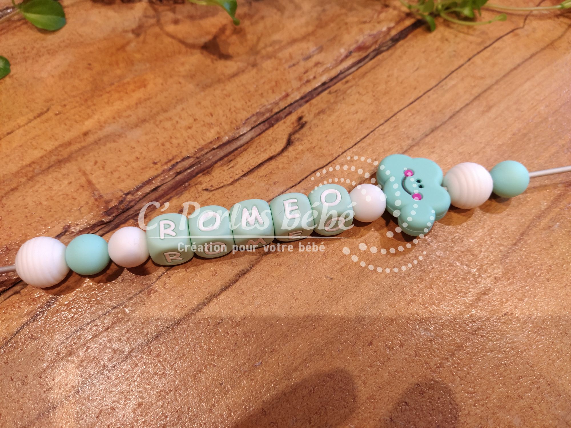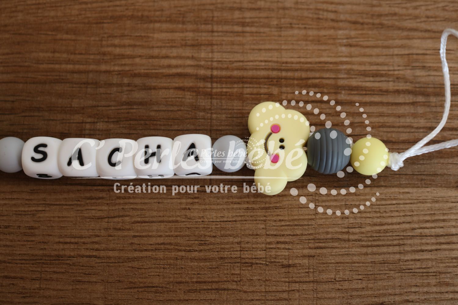 Fabriqué avec des perles en silicone, longueur max 22 cm (respect des normes de sécurité en vigueur).