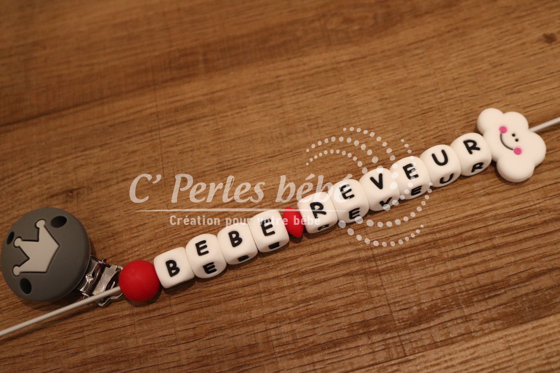 Longueur de l’attache tétine dépend du nombre de perles et de leur forme (normes 22cm max)