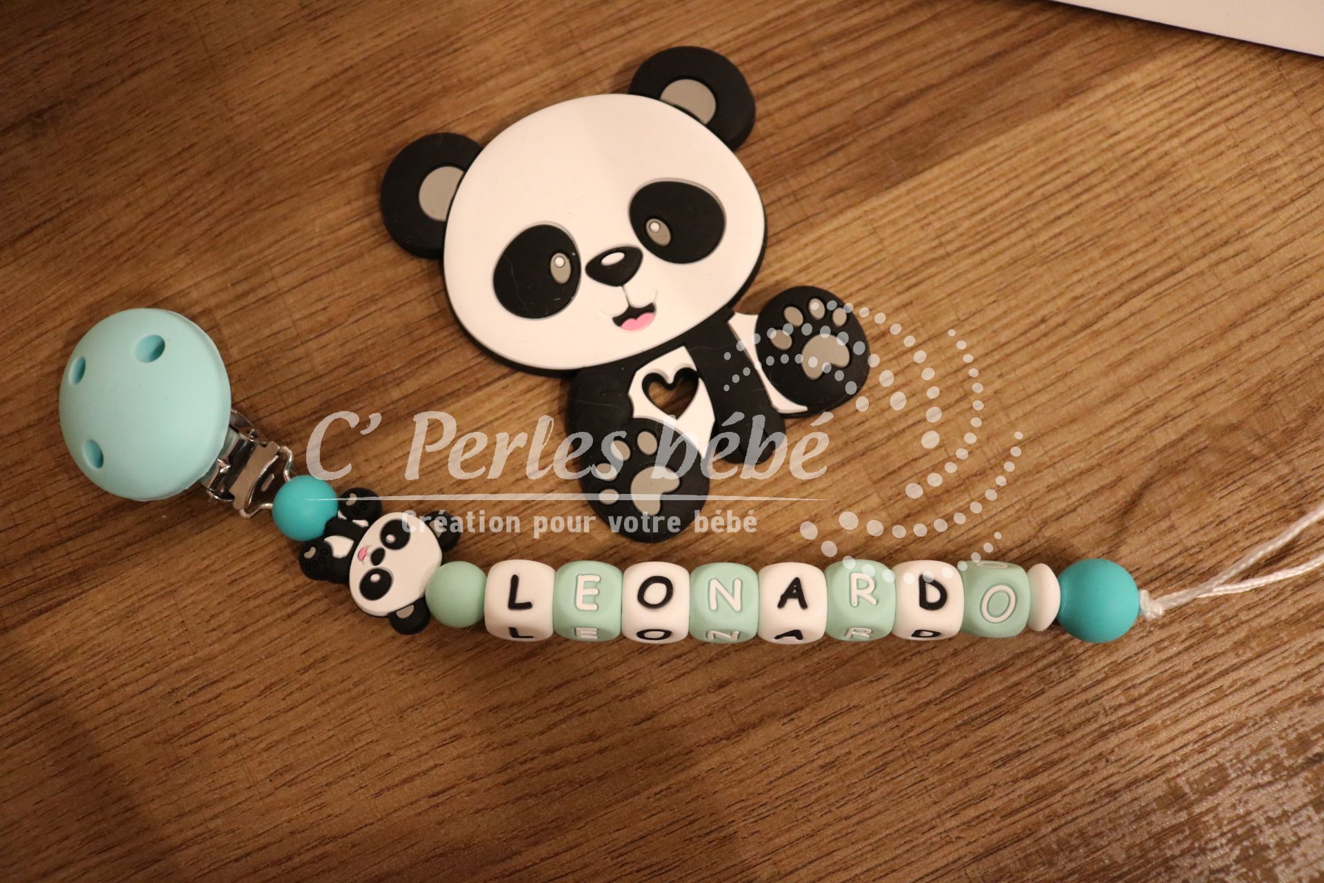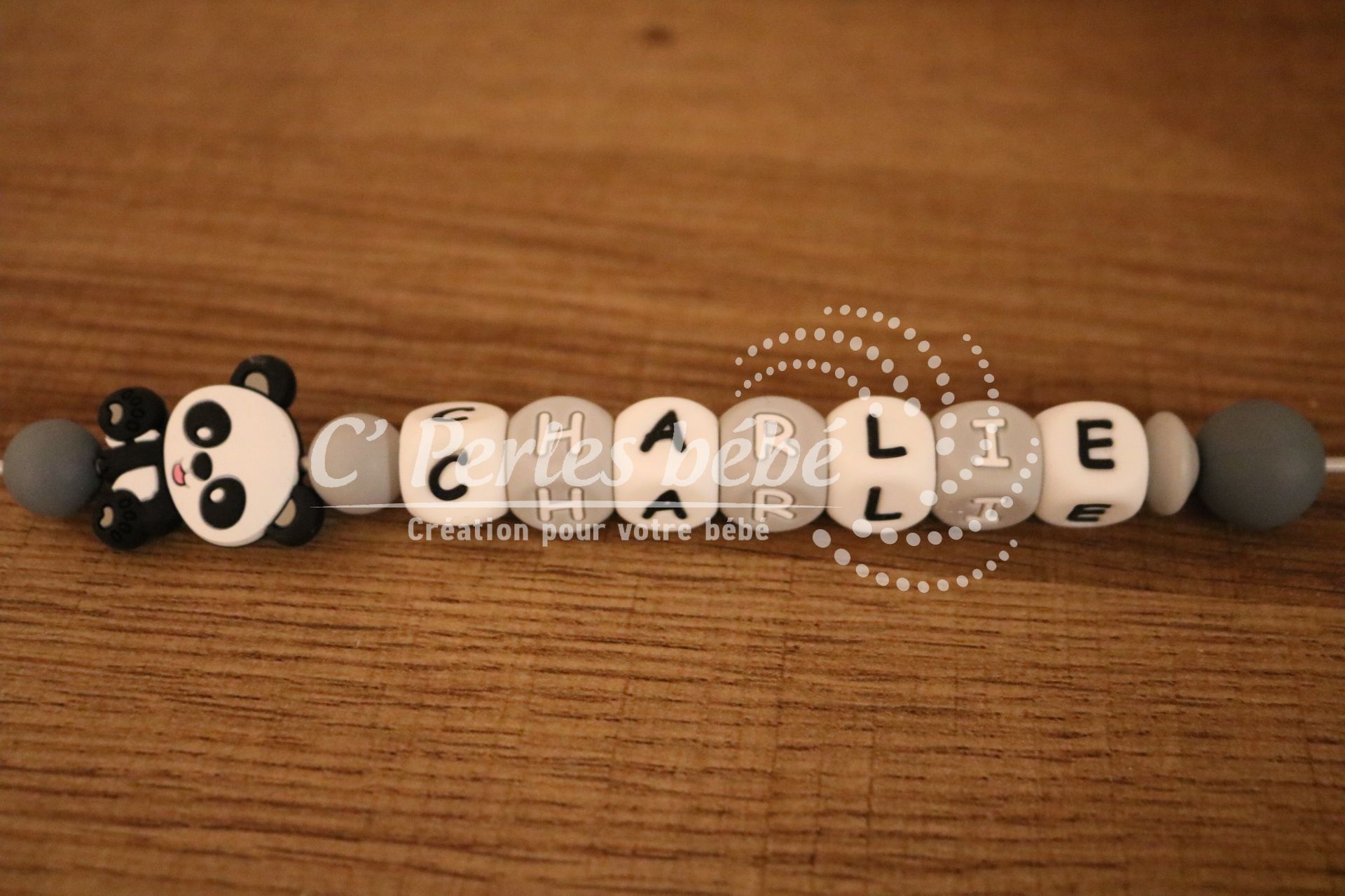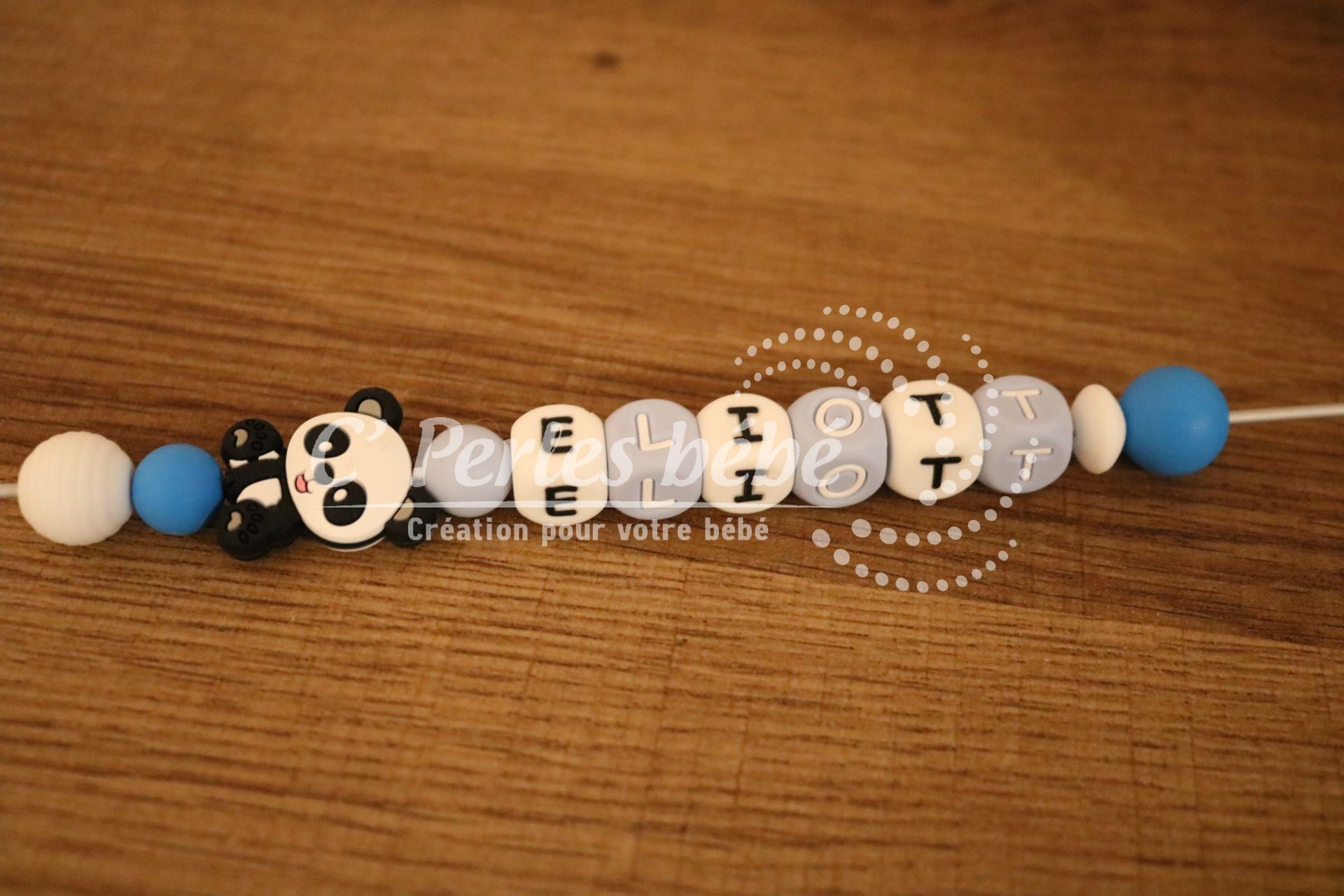 Attache sucette fait main par mes soins, entièrement personnalisable, modèle panda bicolore. Perles en silicone, longueur max 22 cm (respect des normes de sécurité en vigueur). Adaptateur tétine MAM en option.