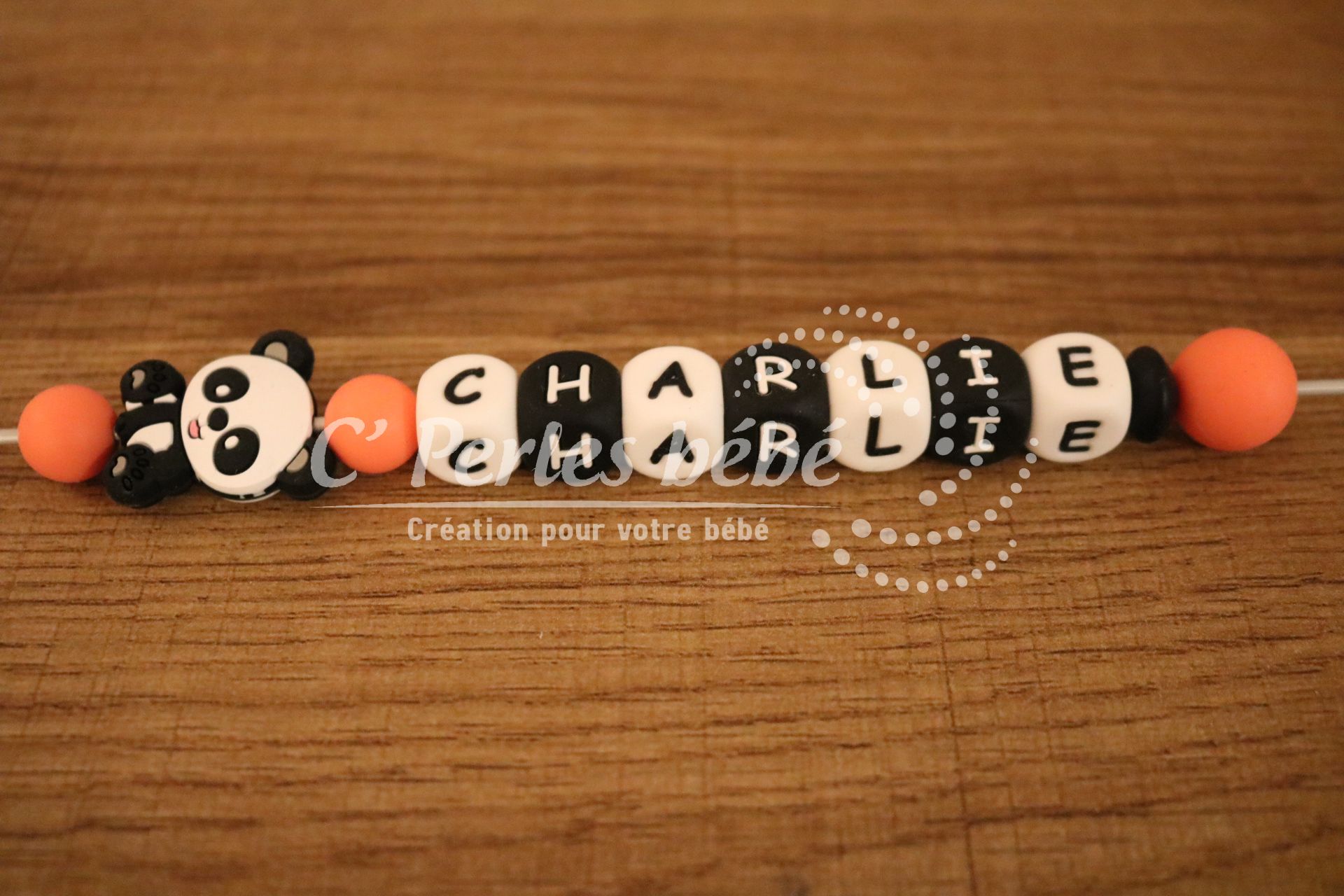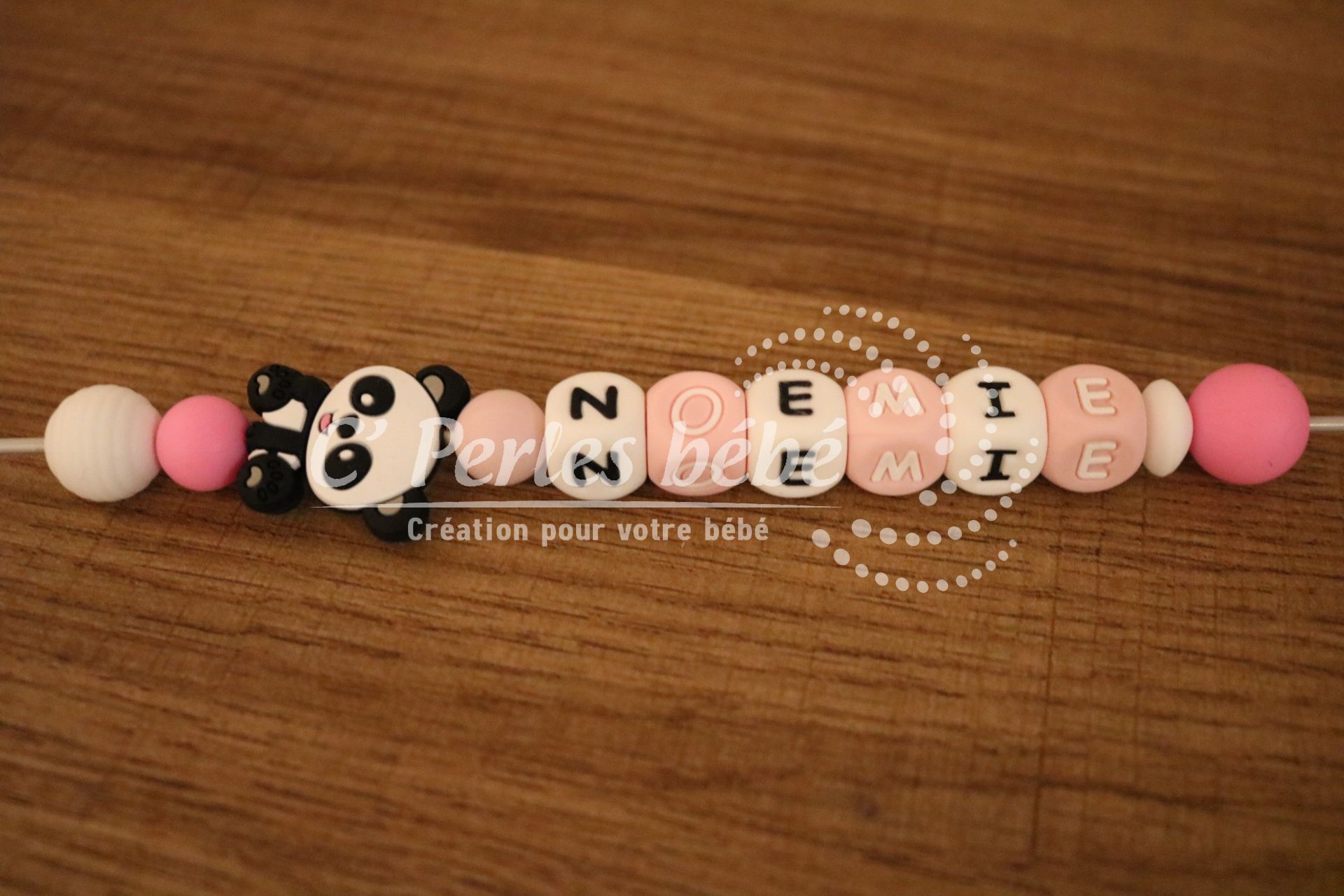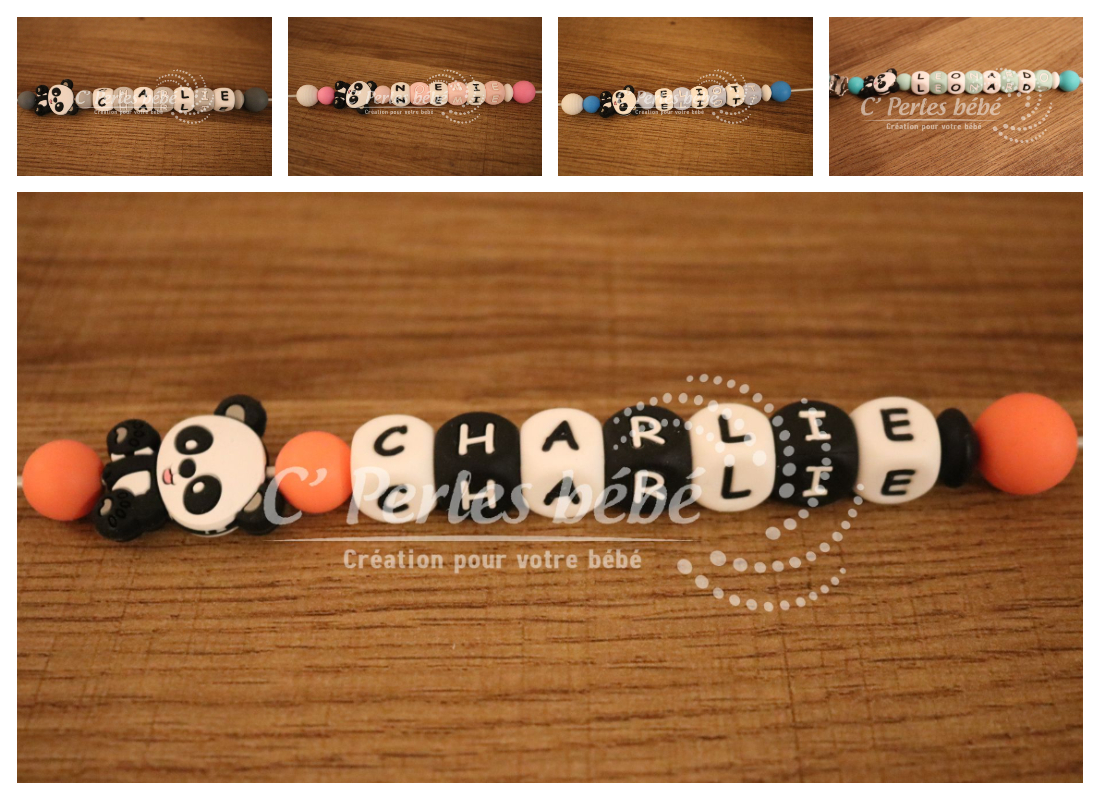 Attache sucette fait main par mes soins, entièrement personnalisable, modèle panda bicolore. Perles en silicone, longueur max 22 cm (respect des normes de sécurité en vigueur). Adaptateur tétine MAM en option.