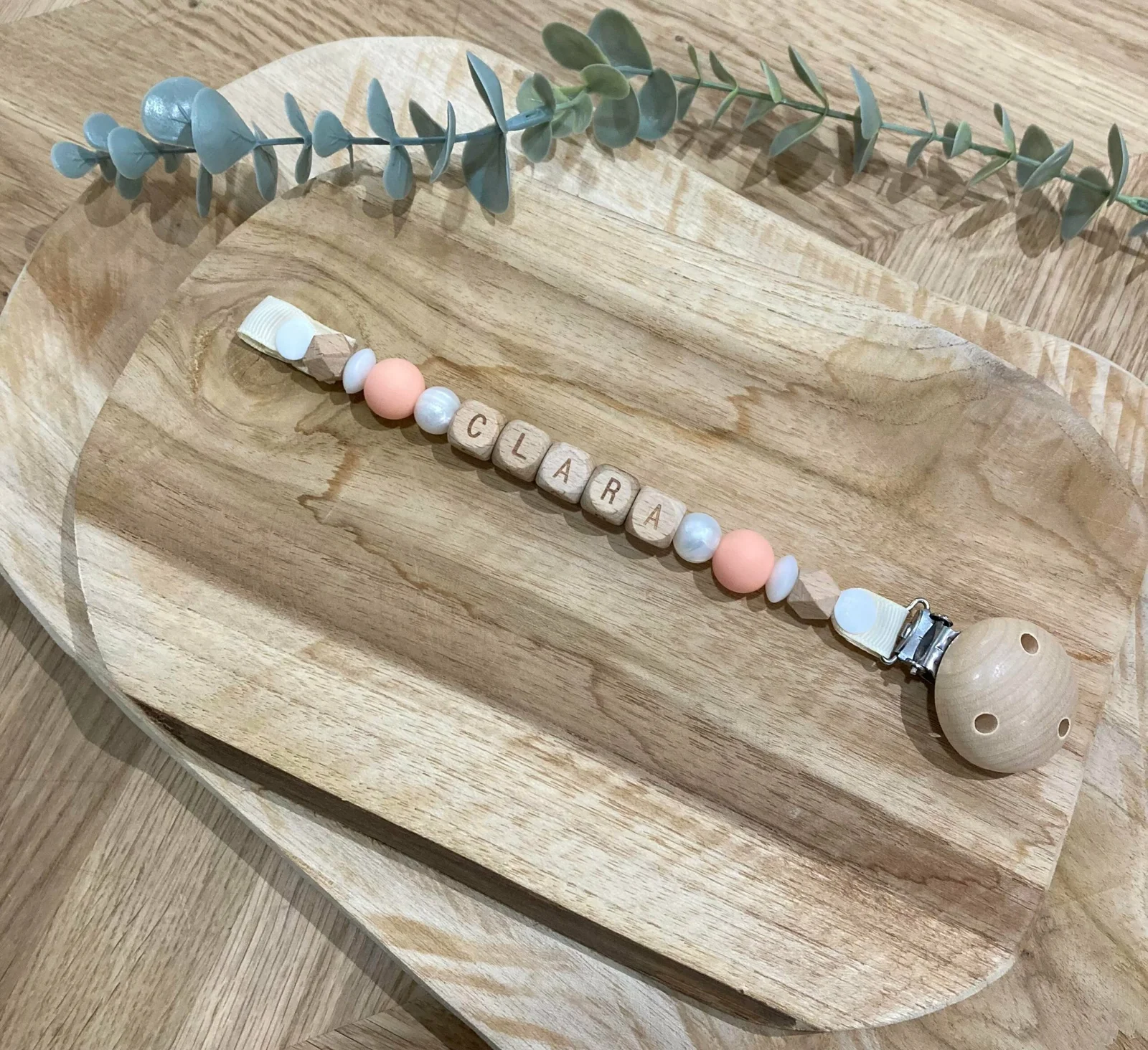 Attache tétine pêche blanc nacré