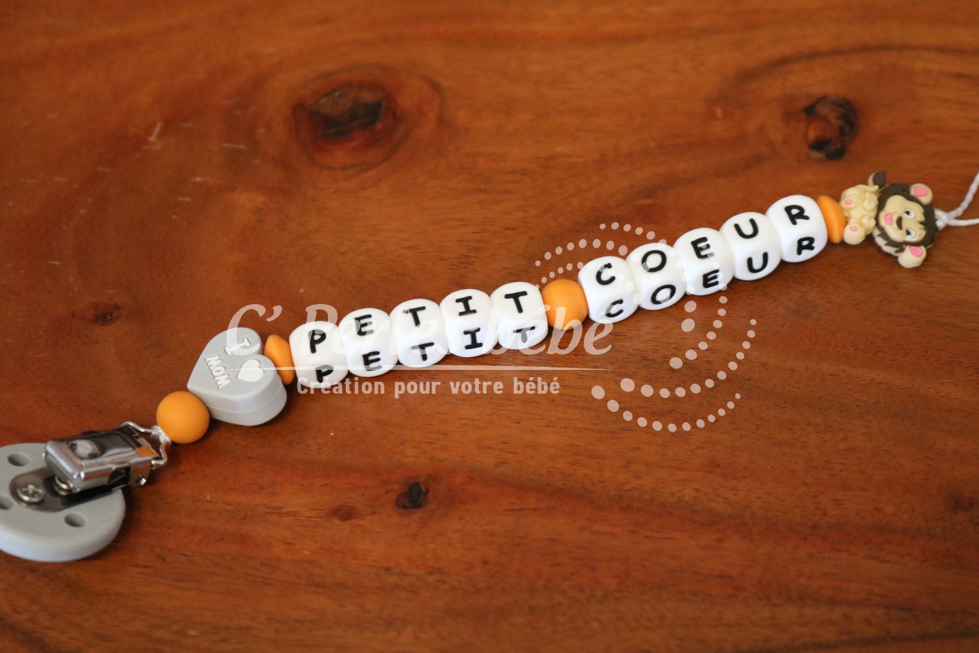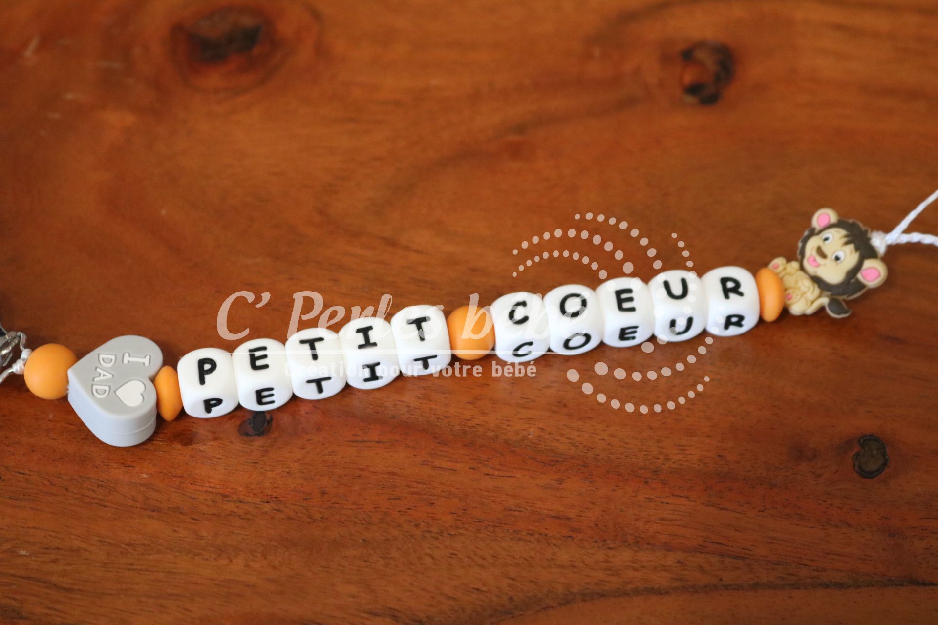 Attache sucette fait main par mes soins, modèle petit coeur entièrement personnalisable. Perles en silicone, longueur max 22 cm (respect des normes de sécurité en vigueur). Adaptateur tétine MAM disponible également. Version attache doudou disponible également